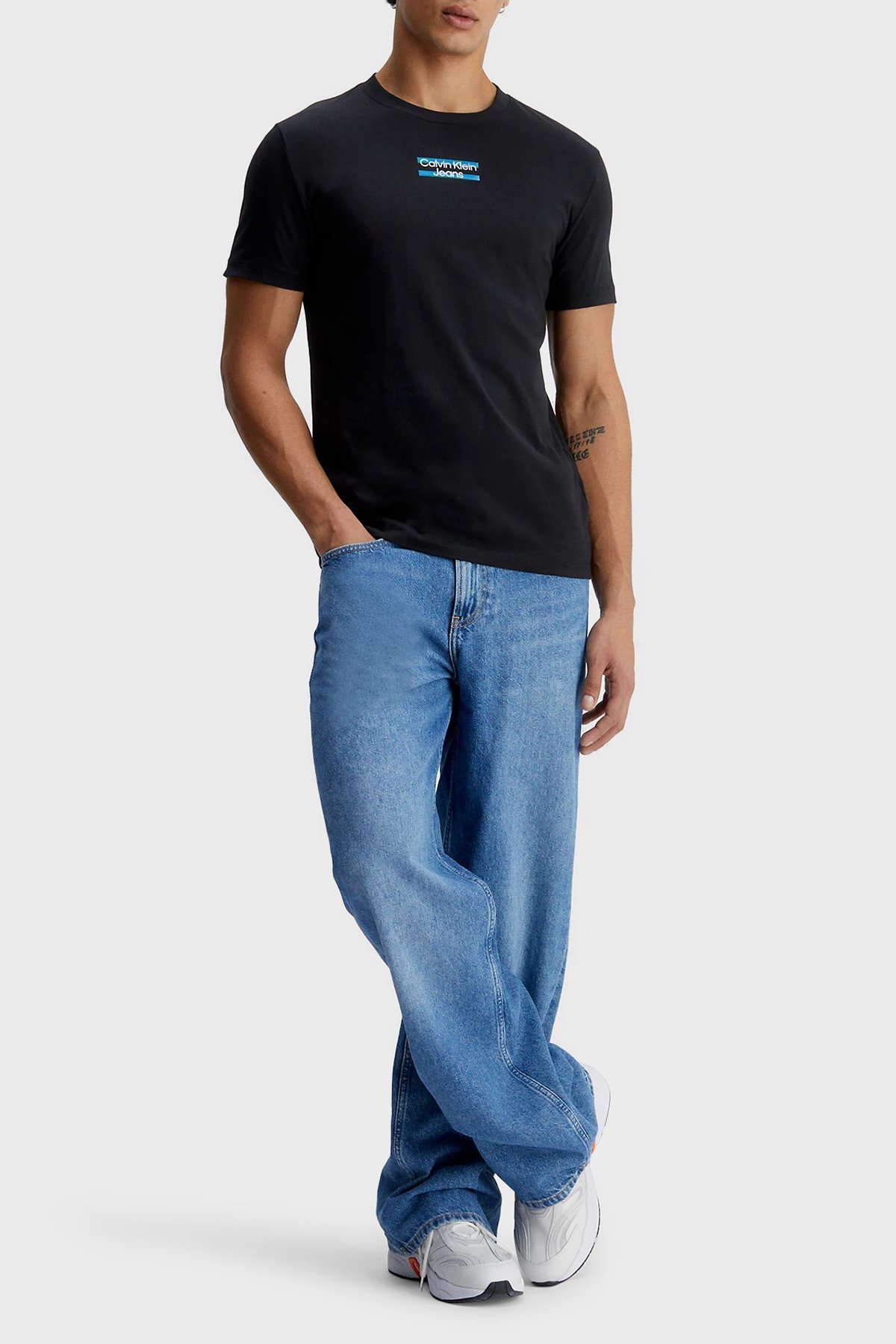 Logolu Bisiklet Yaka Slim Fit Pamuklu Jarse Erkek T Shirt J30J322872 BEH SİYAH