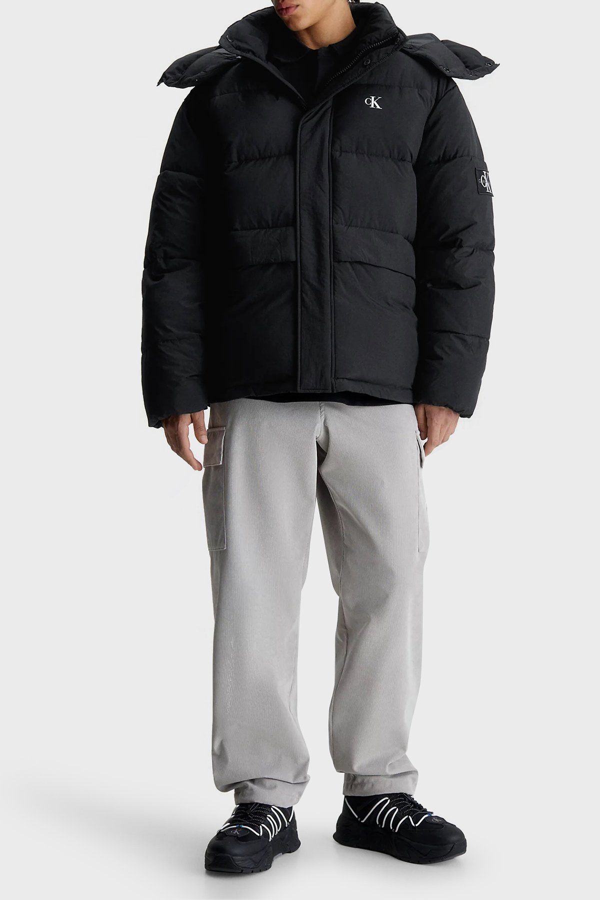 Logolu Çıkarılabilir Kapüşonlu Regular Fit J30J323709BEH Erkek Mont J30J323709 BEH SİYAH