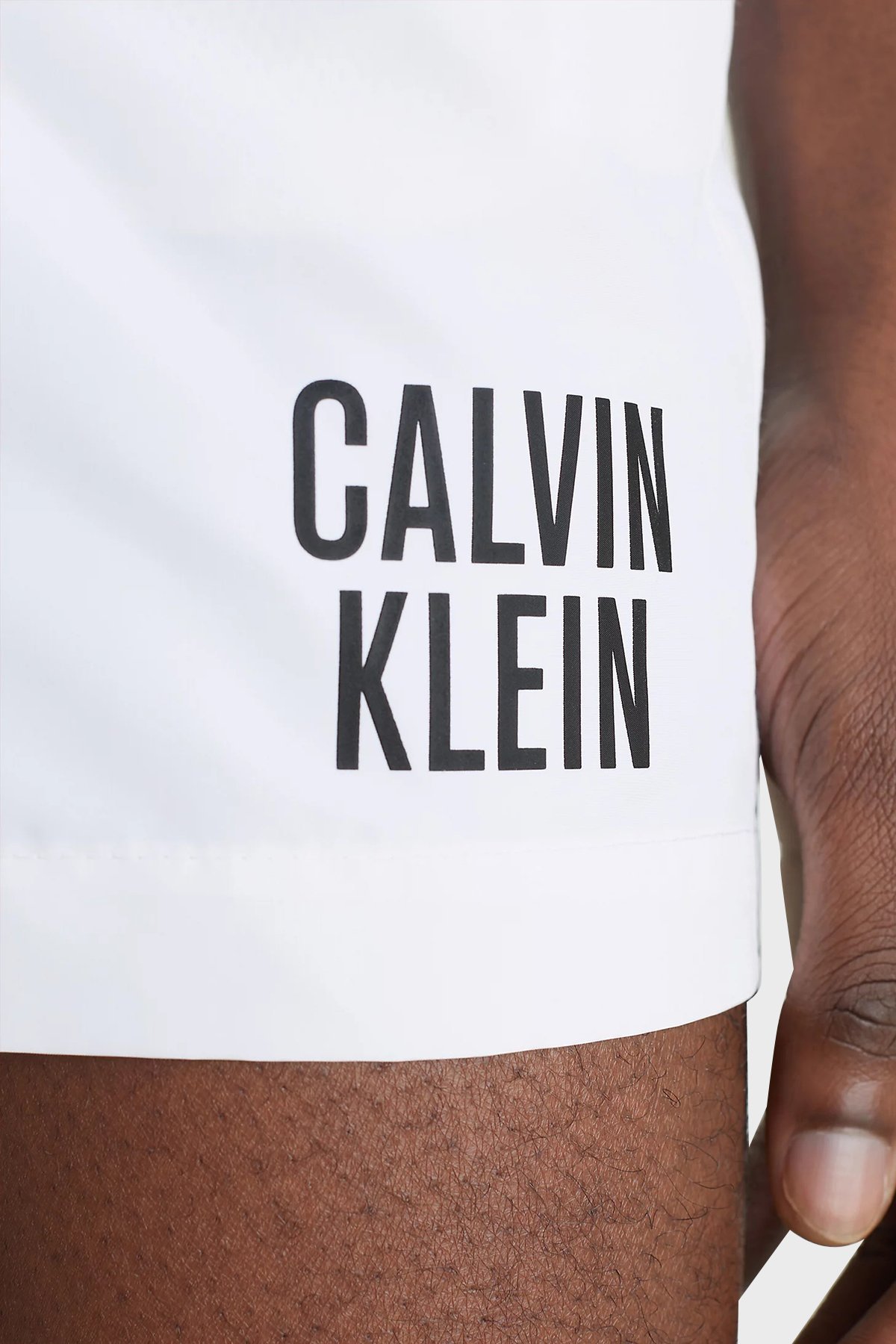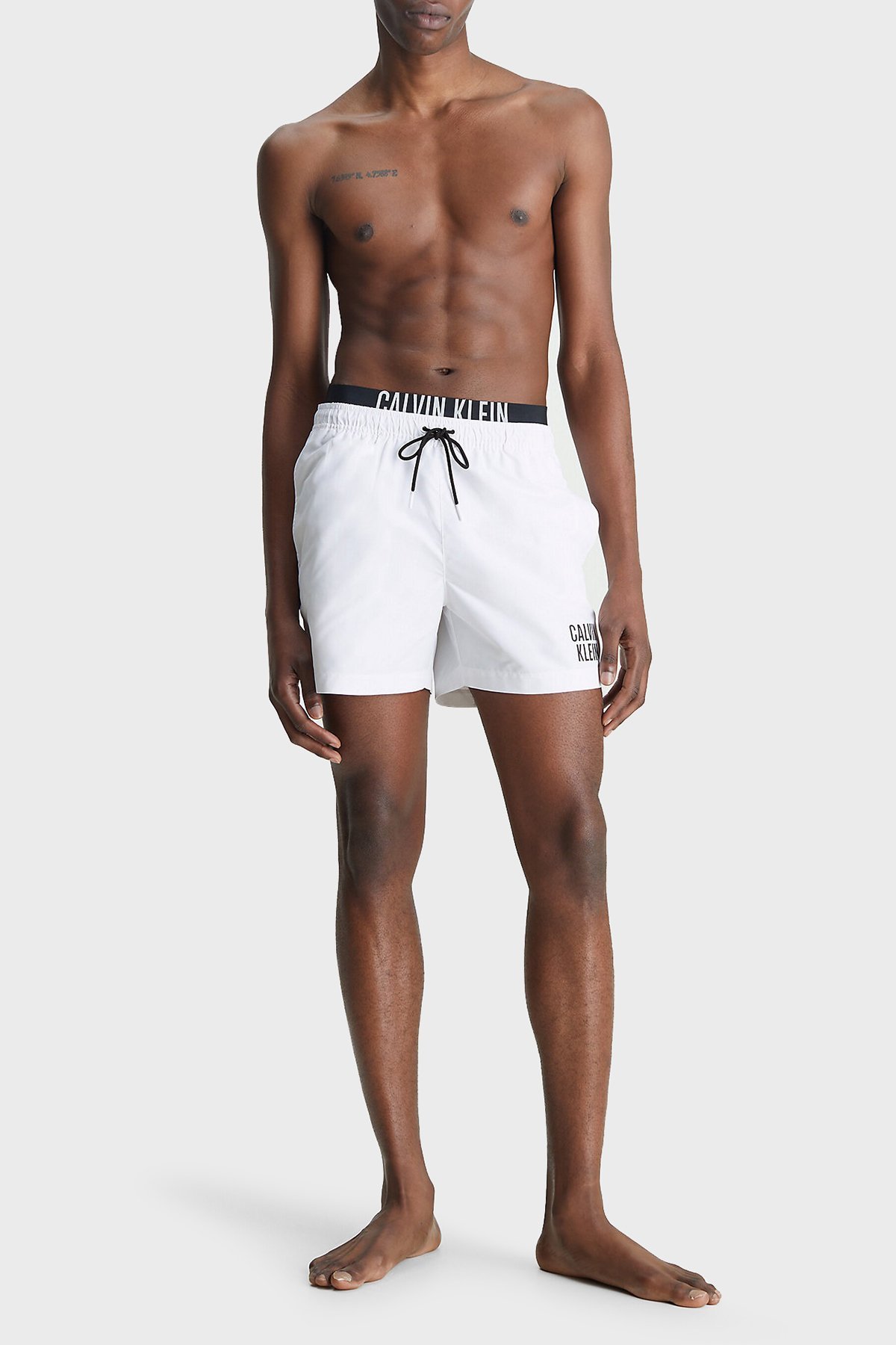 Logolu Deniz Şortu Belden Bağlamalı KM0KM00740YCD Erkek Mayo Short KM0KM00740 YCD BEYAZ
