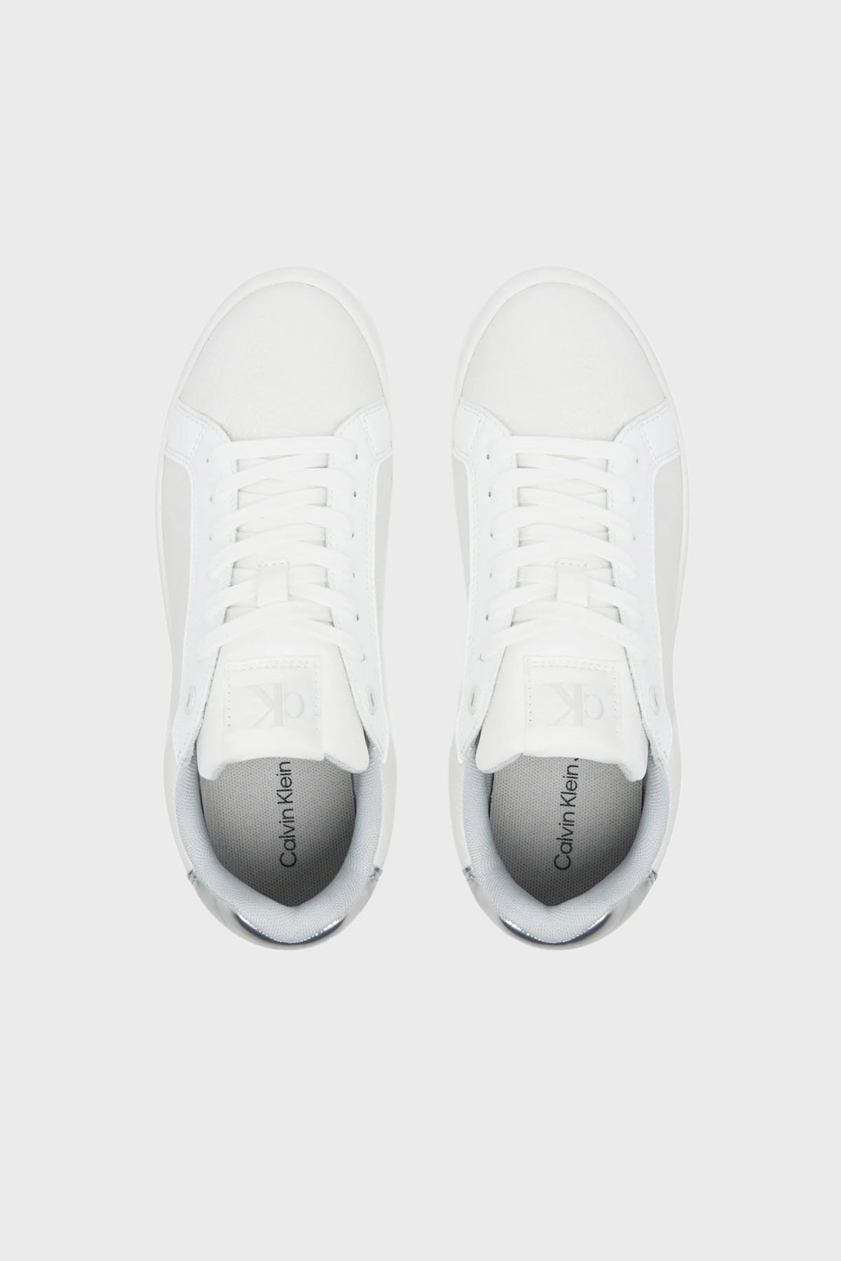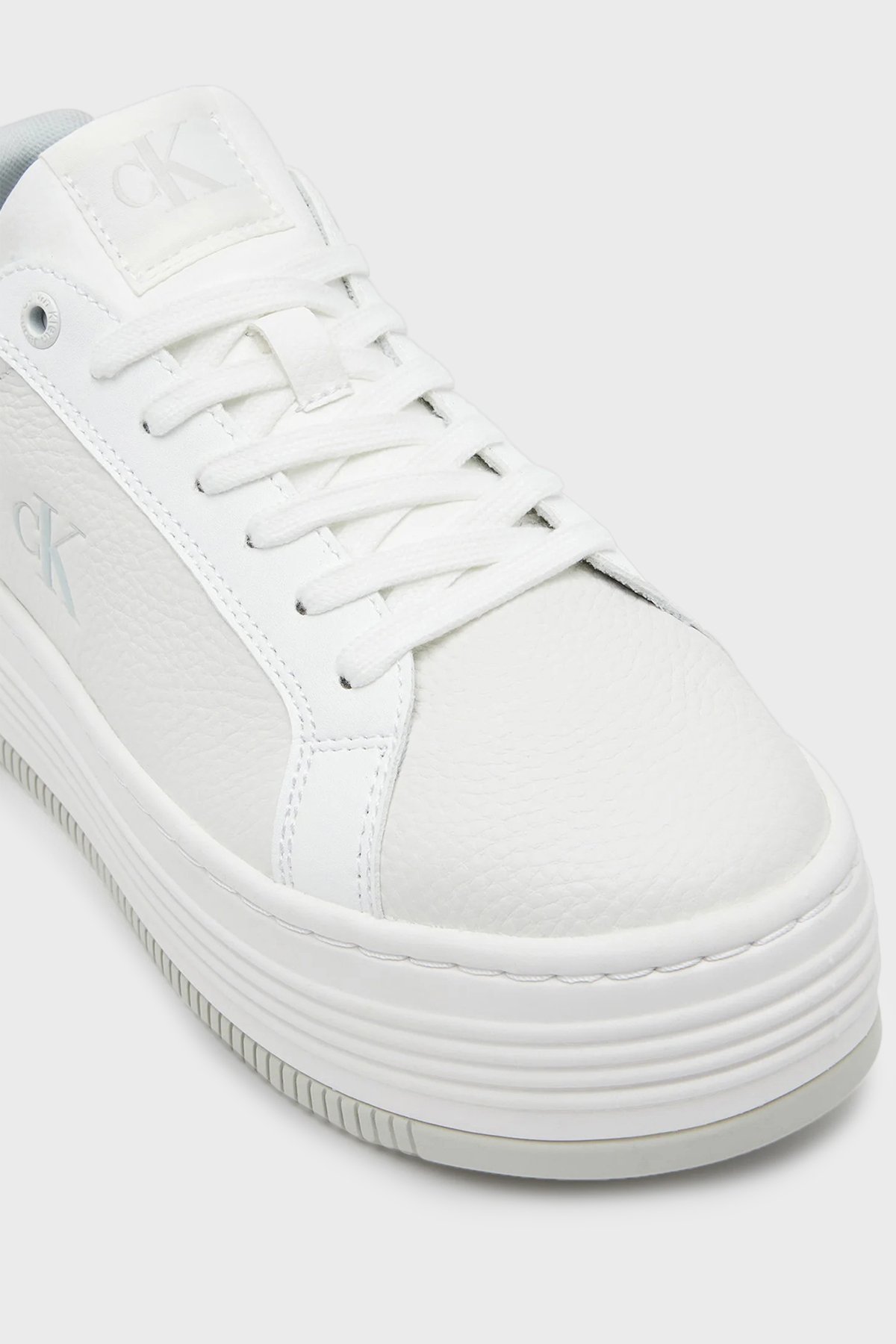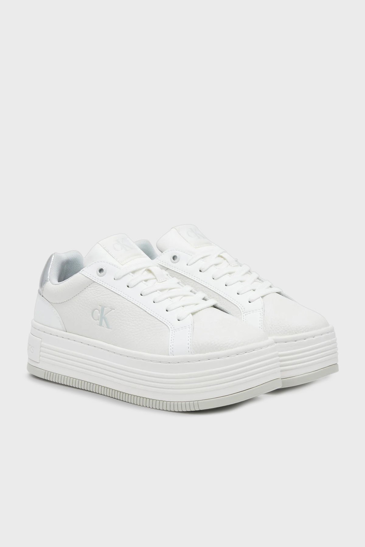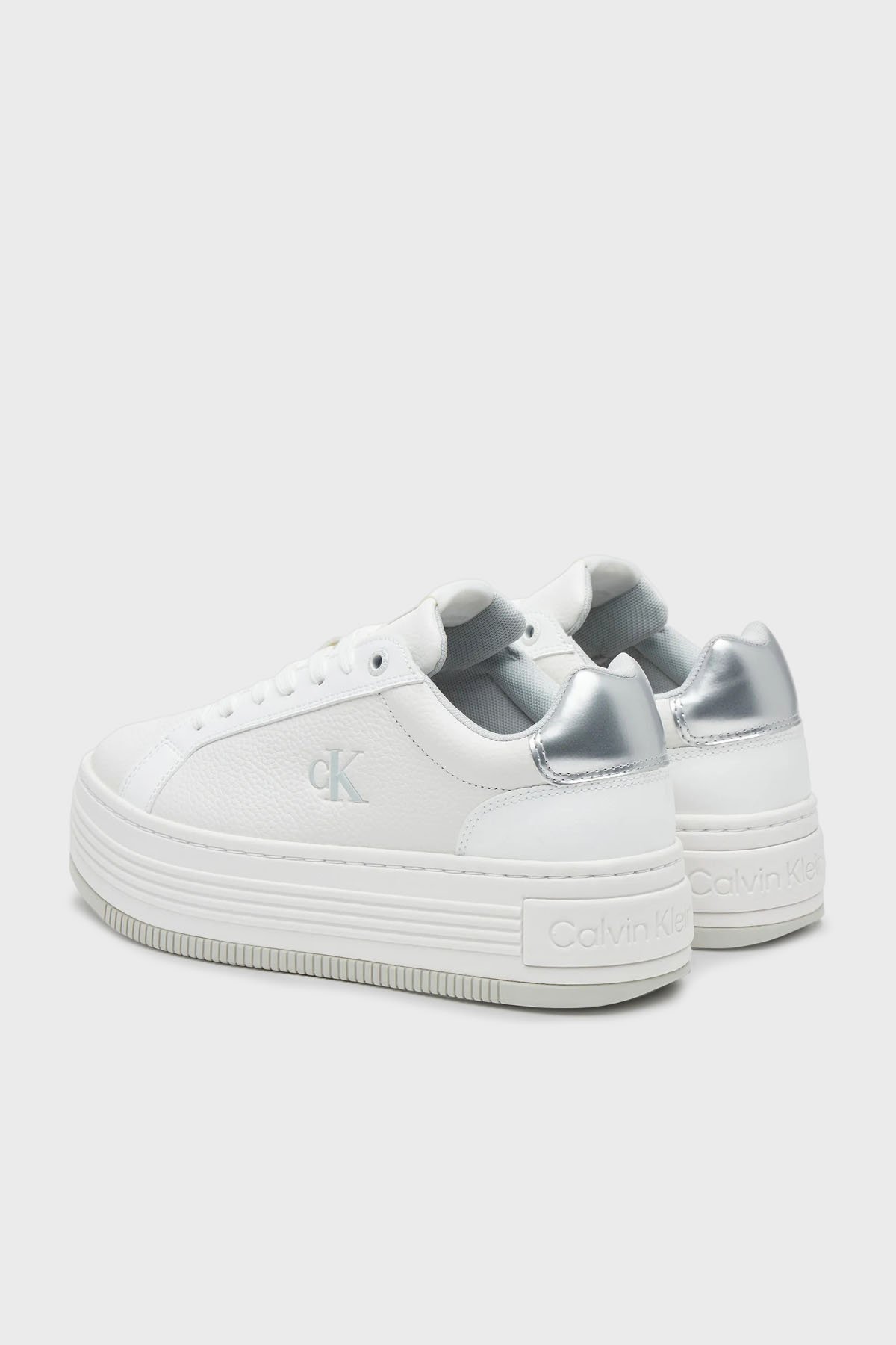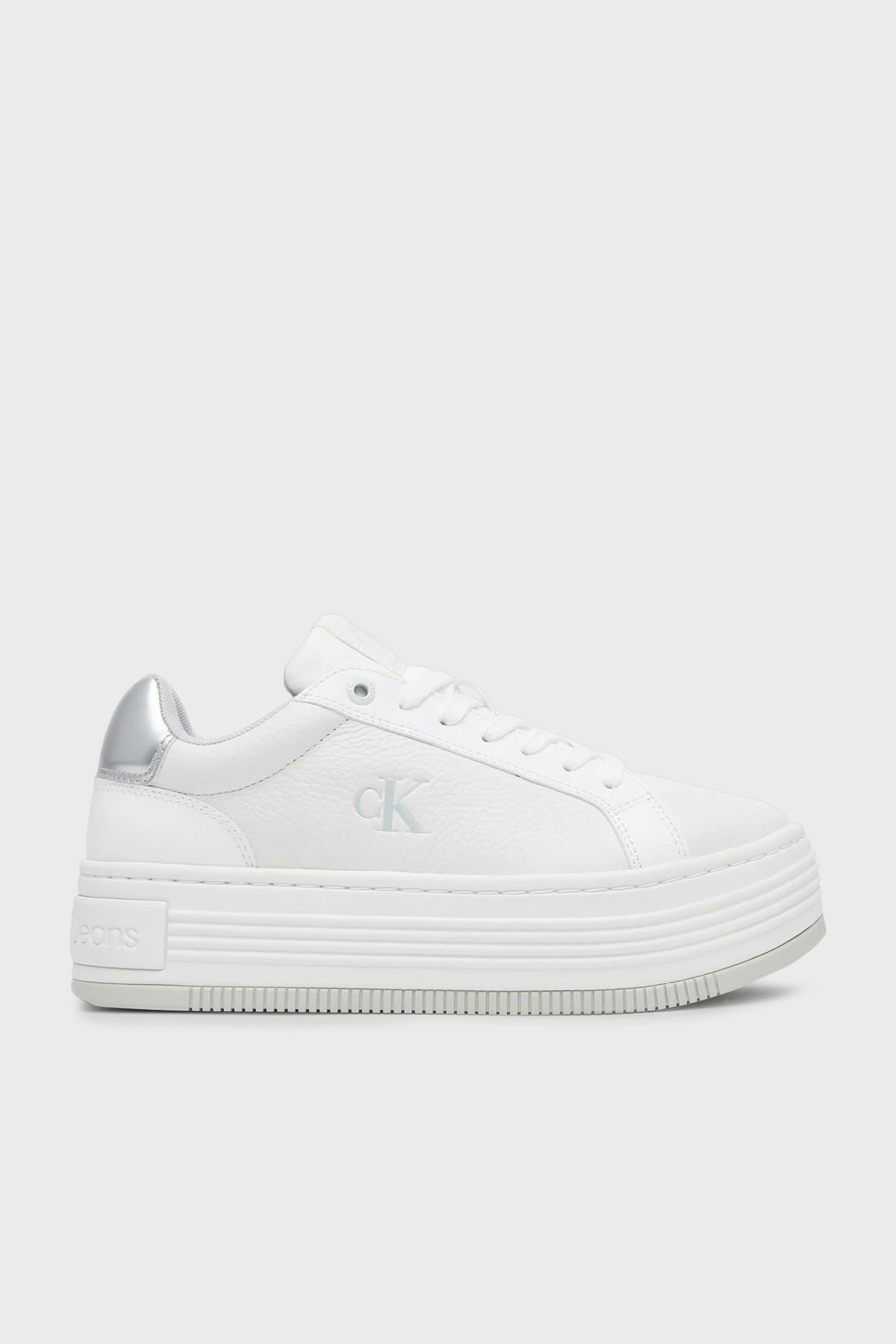 Logolu Deri Platform Sneaker YW0YW017660LI Bayan Ayakkabı YW0YW01766 0LI BEYAZ-GÜMÜŞ