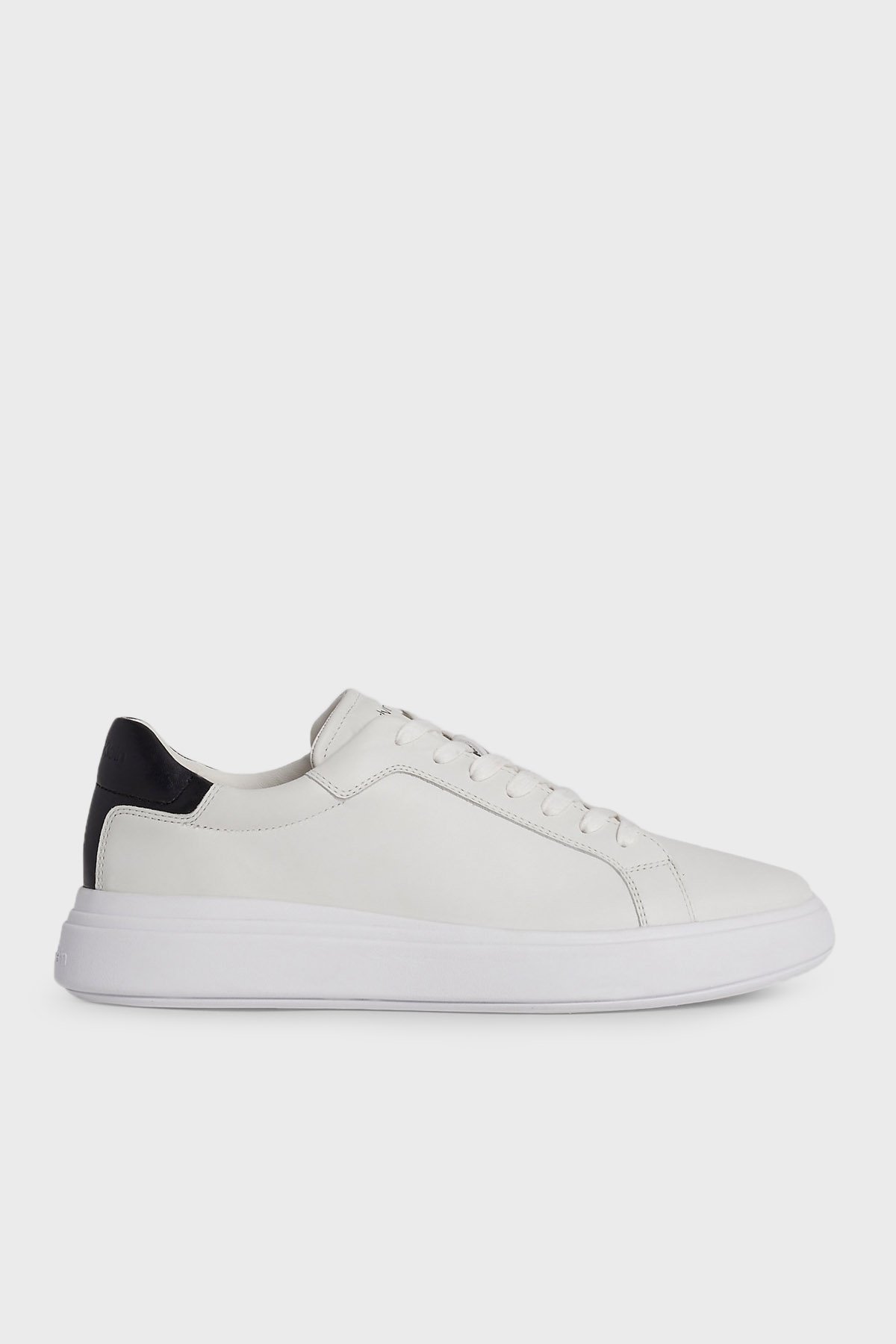 Logolu Deri Sneaker HM0HM010160K9 Erkek Ayakkabı HM0HM01016 0K9 BEYAZ-SİYAH