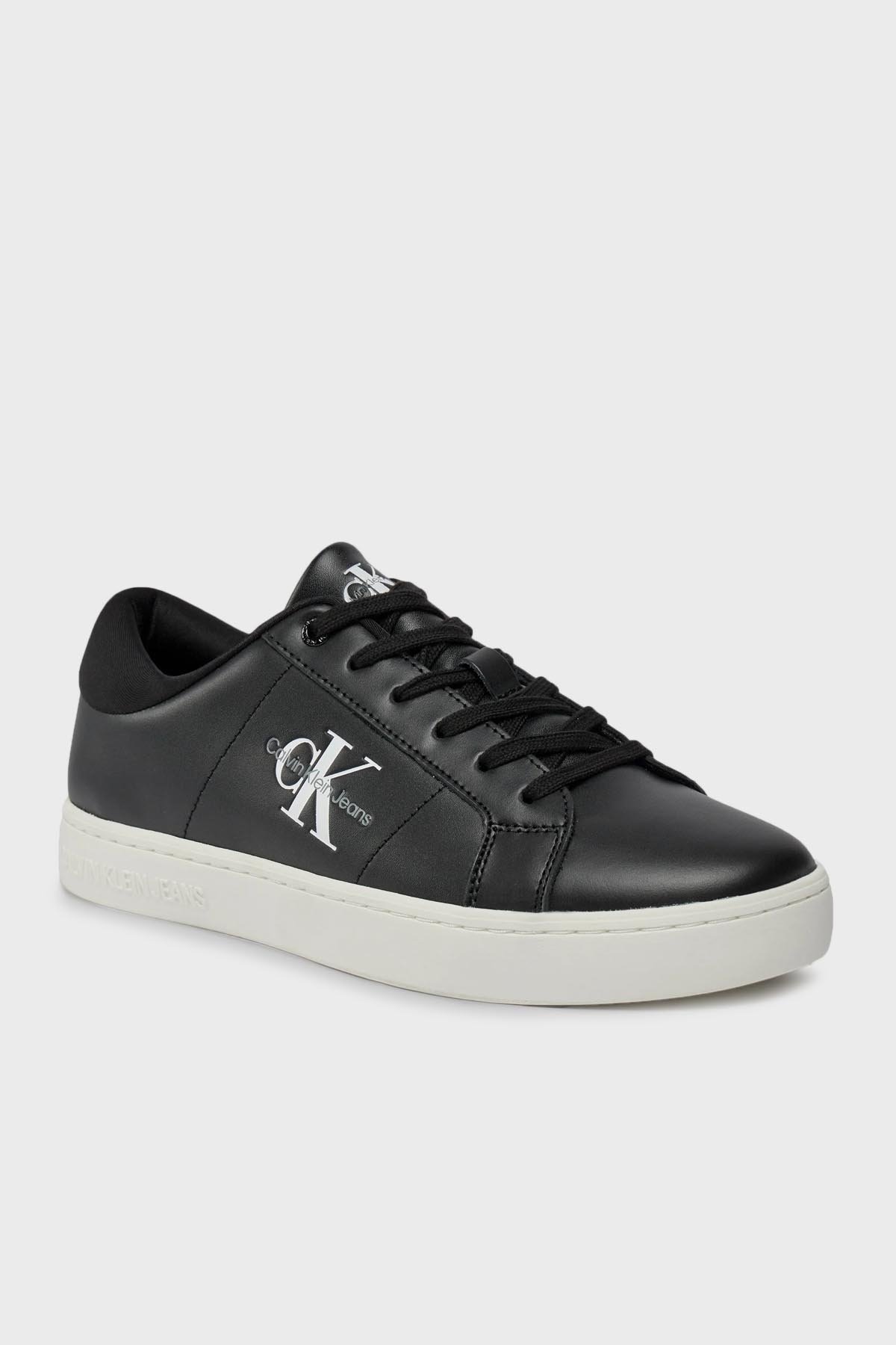 Logolu Deri Sneaker YM0YM008640GM Erkek Ayakkabı YM0YM00864 0GM SİYAH-BEYAZ