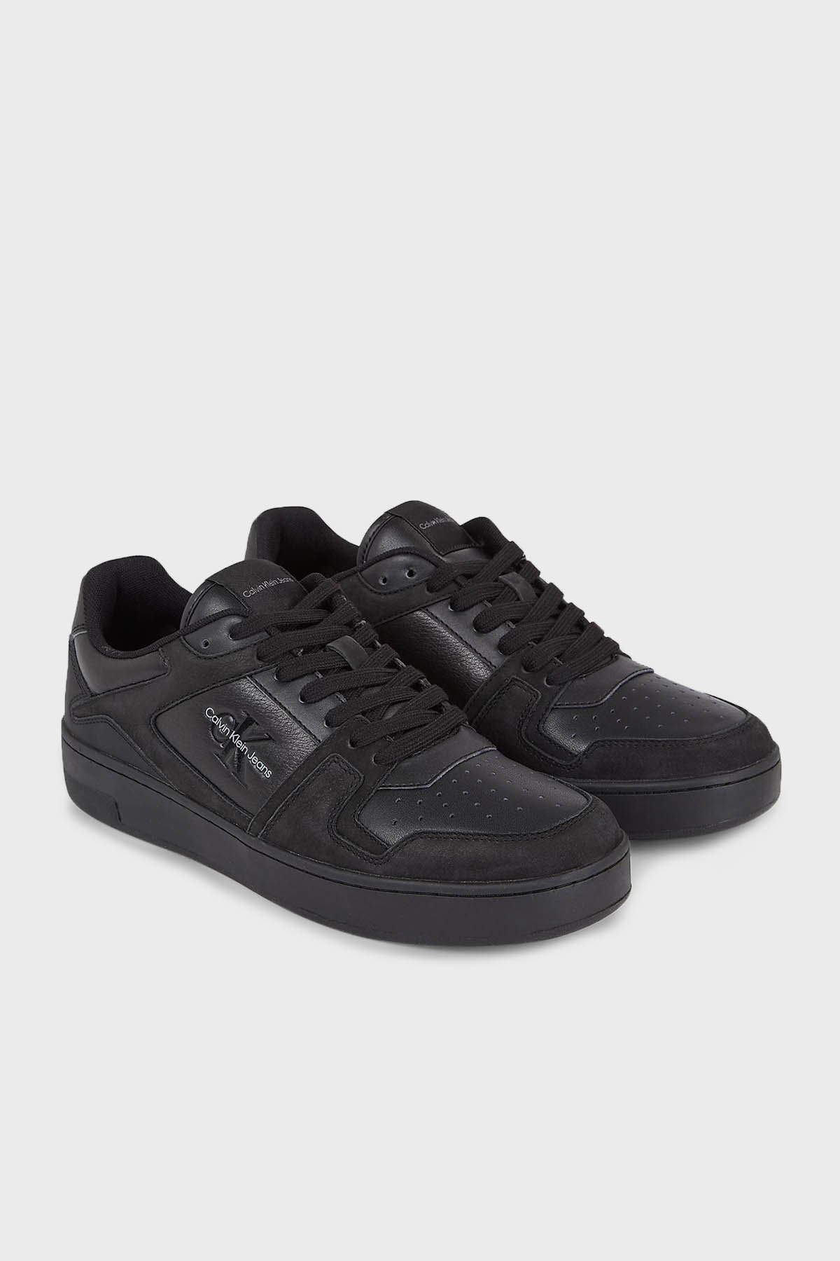 Logolu Deri Sneaker YM0YM008840GT Erkek Ayakkabı YM0YM00884 0GT SİYAH