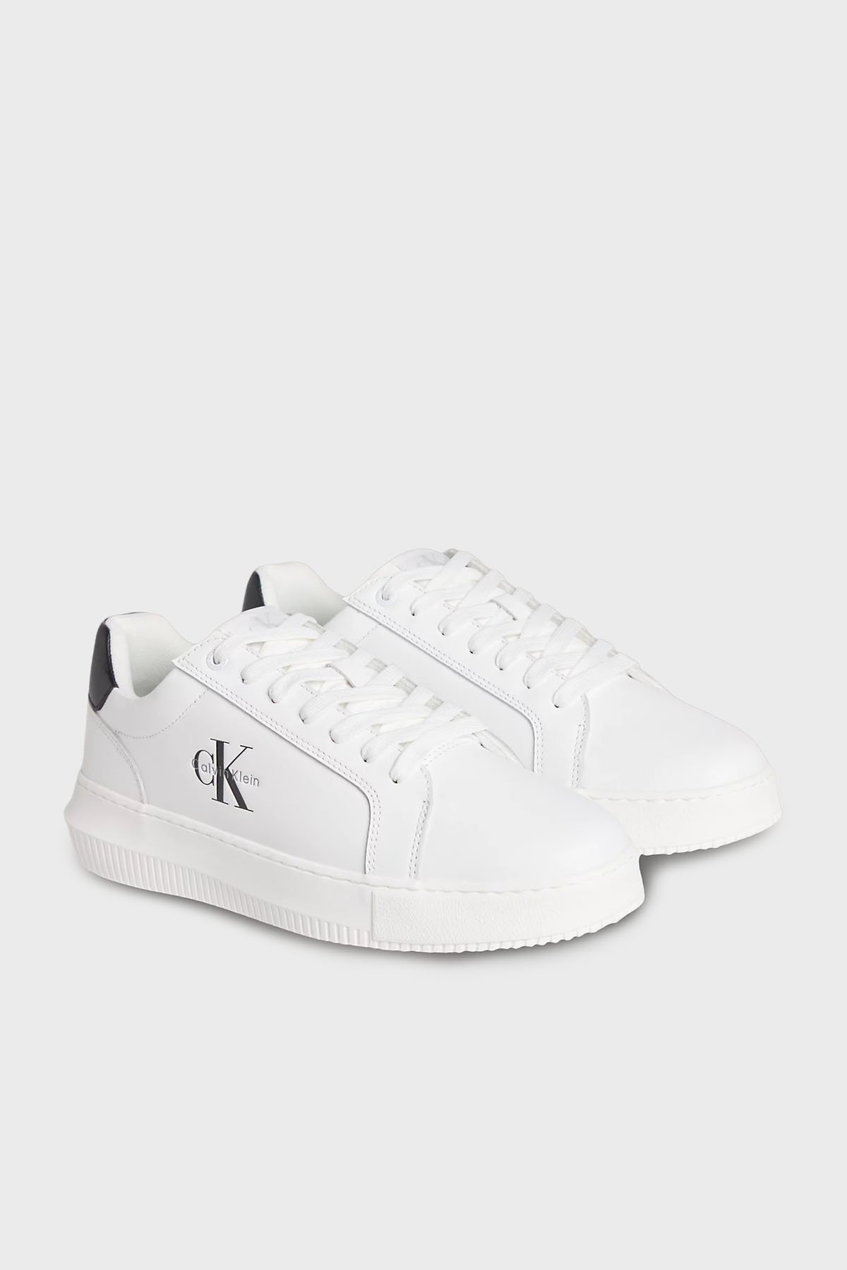 Logolu Deri Sneaker YM0YM013170LD Erkek Ayakkabı YM0YM01317 0LD BEYAZ-SİYAH