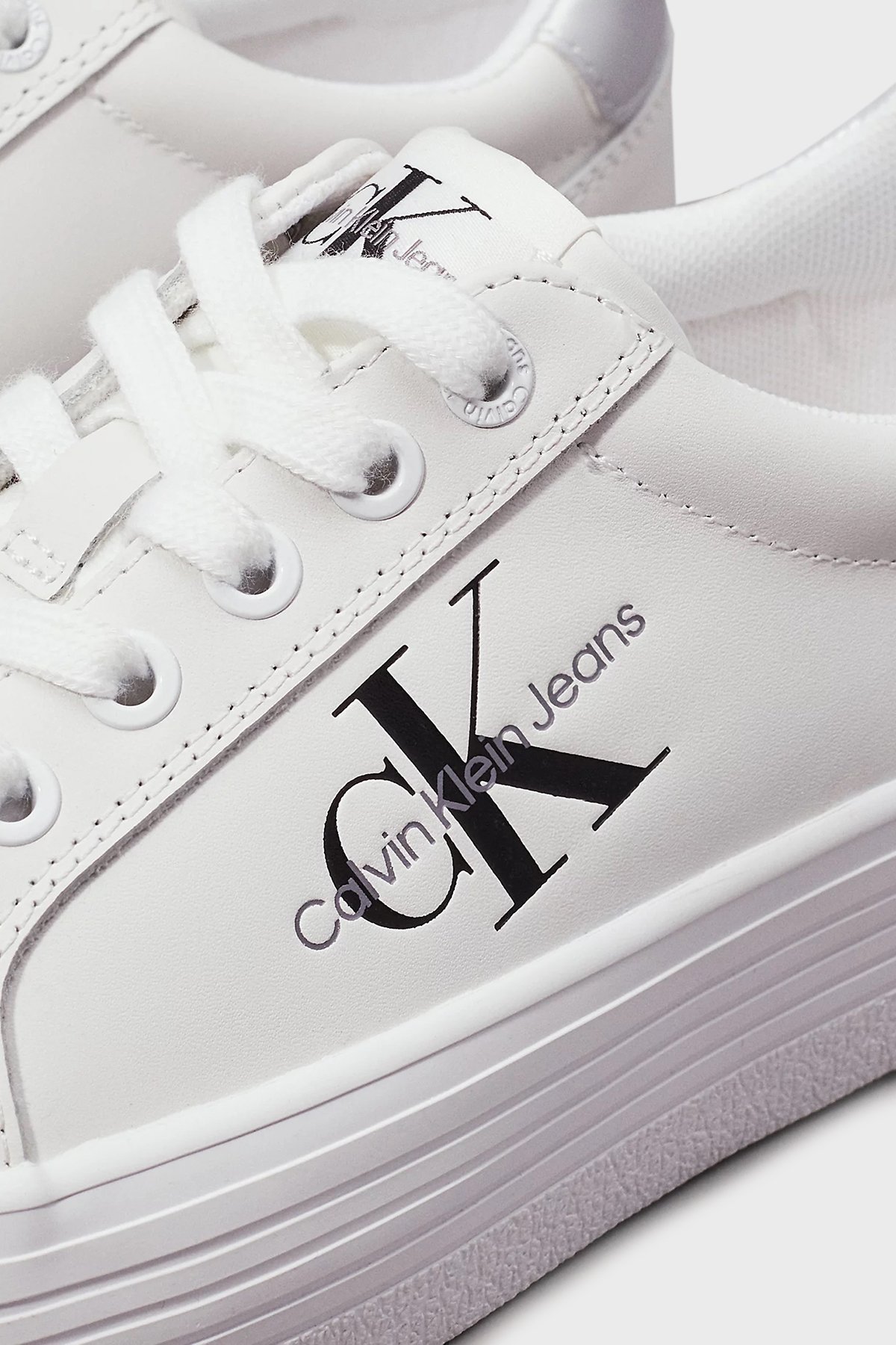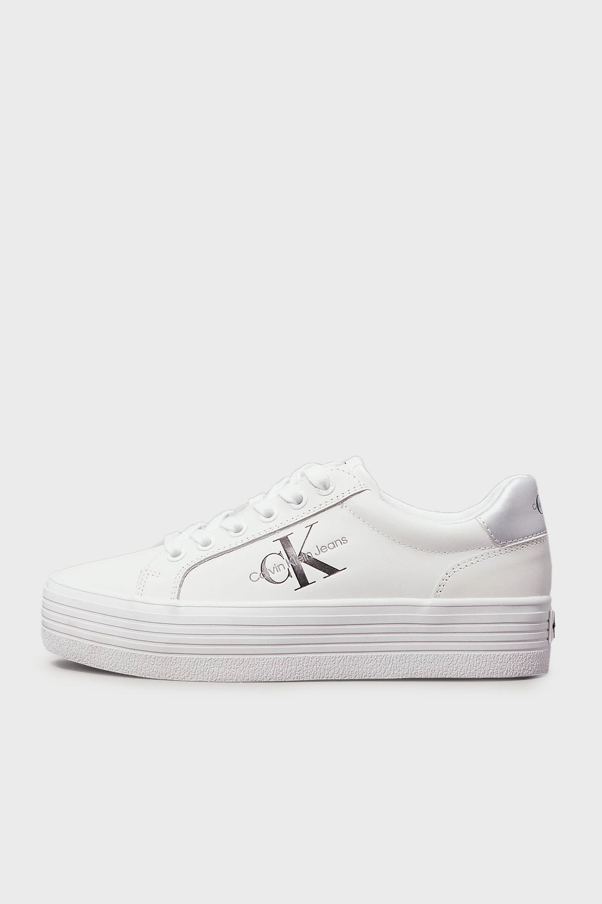 Logolu Deri Sneaker YW0YW014740K9 Bayan Ayakkabı YW0YW01474 0K9 BEYAZ-GÜMÜŞ