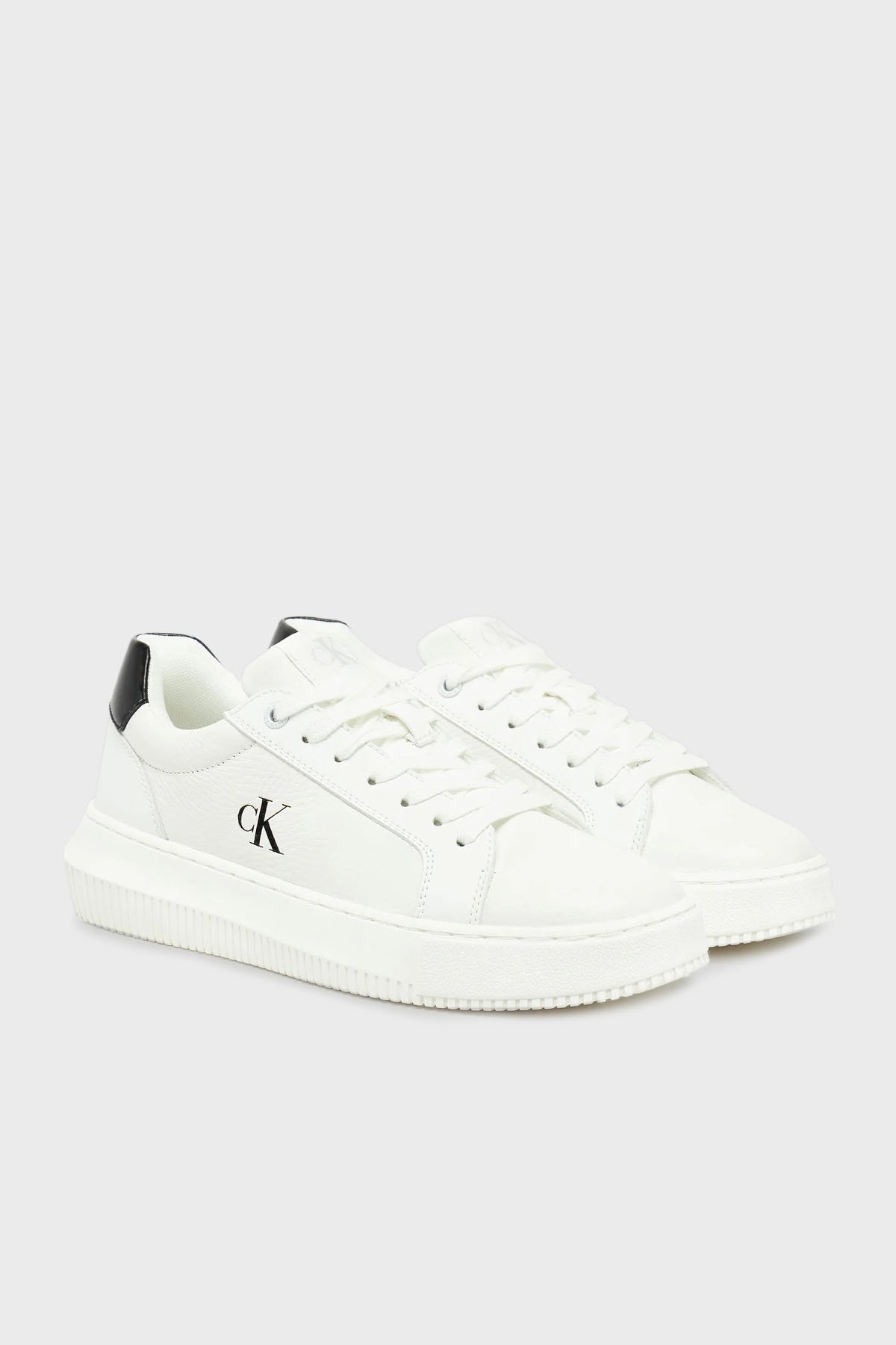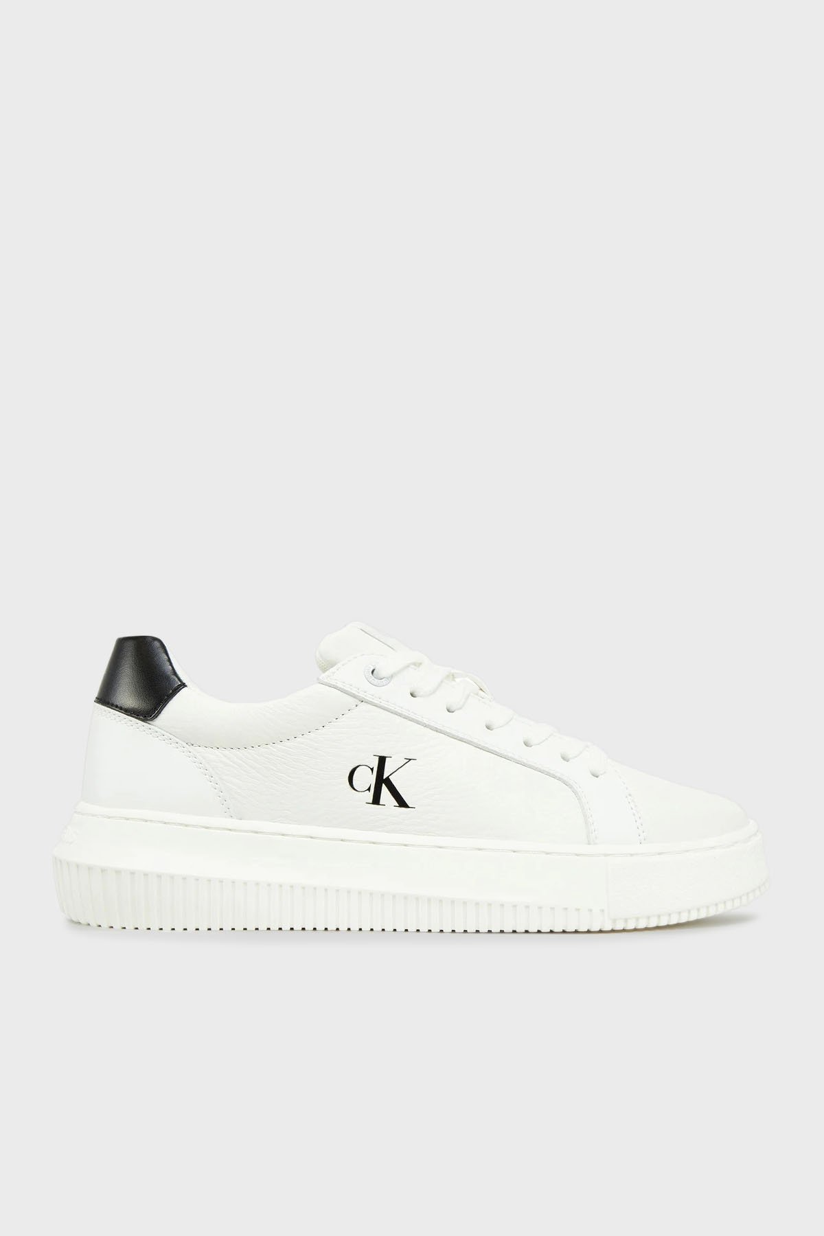 Logolu Deri Sneaker YW0YW0176901W Bayan Ayakkabı YW0YW01769 01W BEYAZ-SİYAH