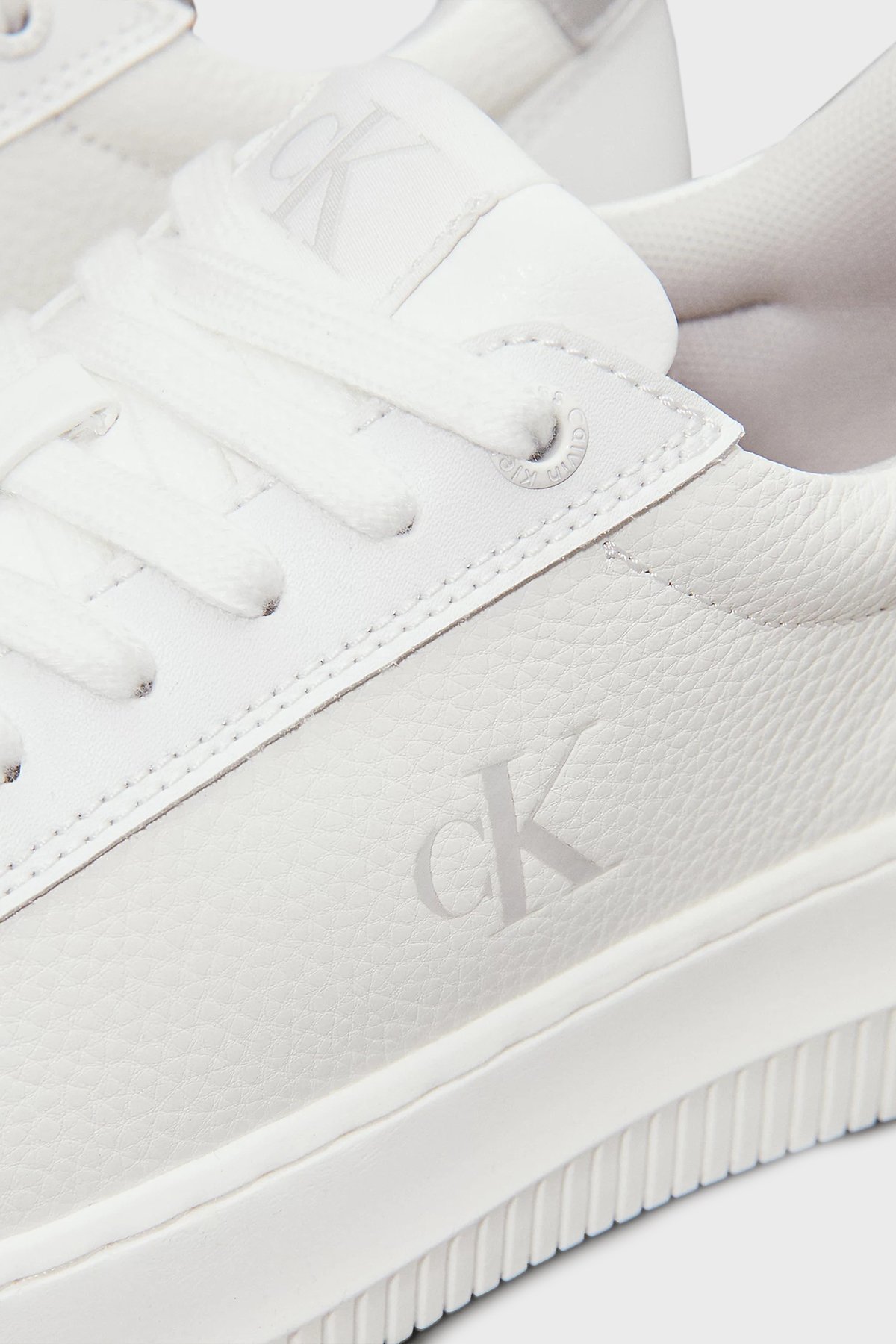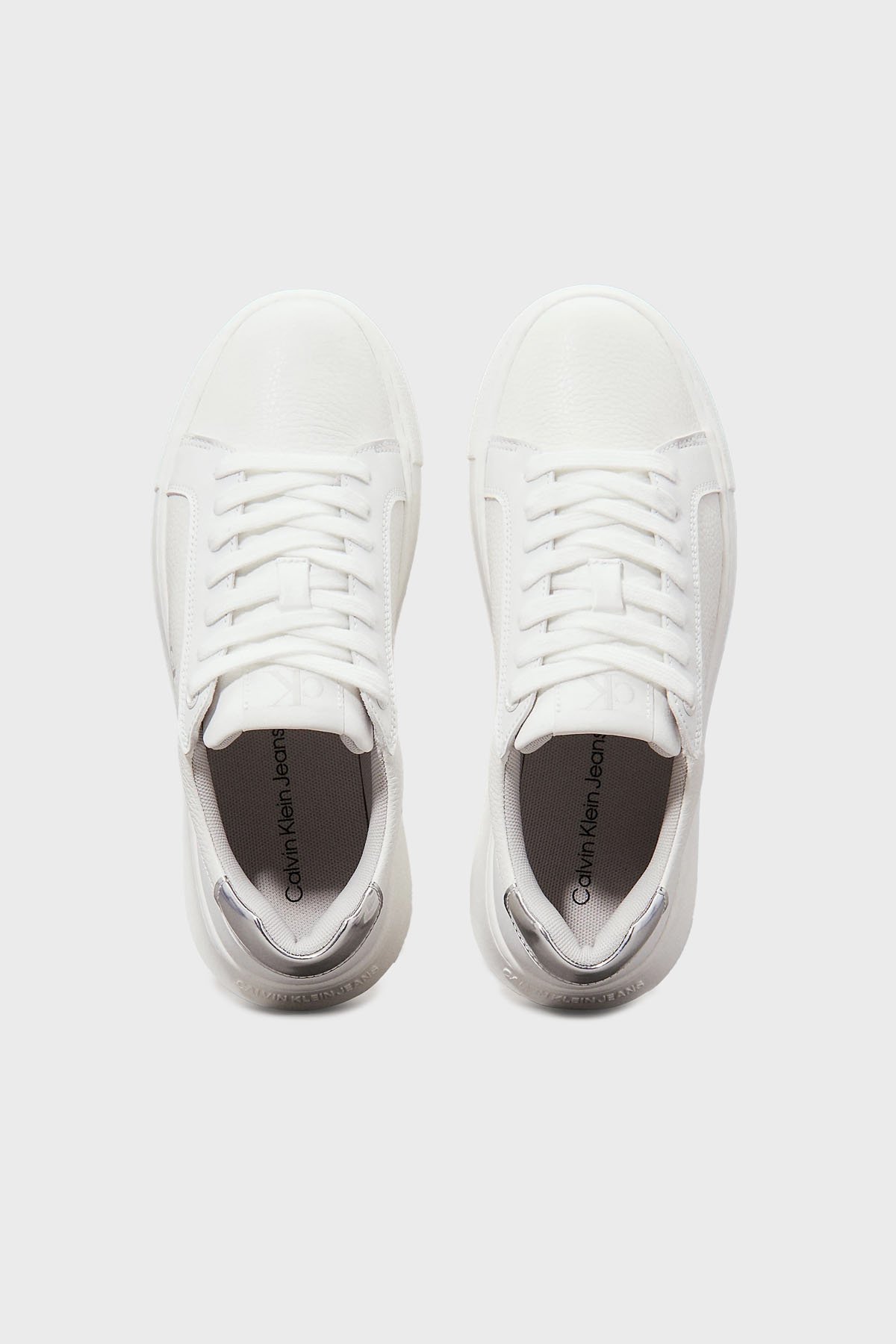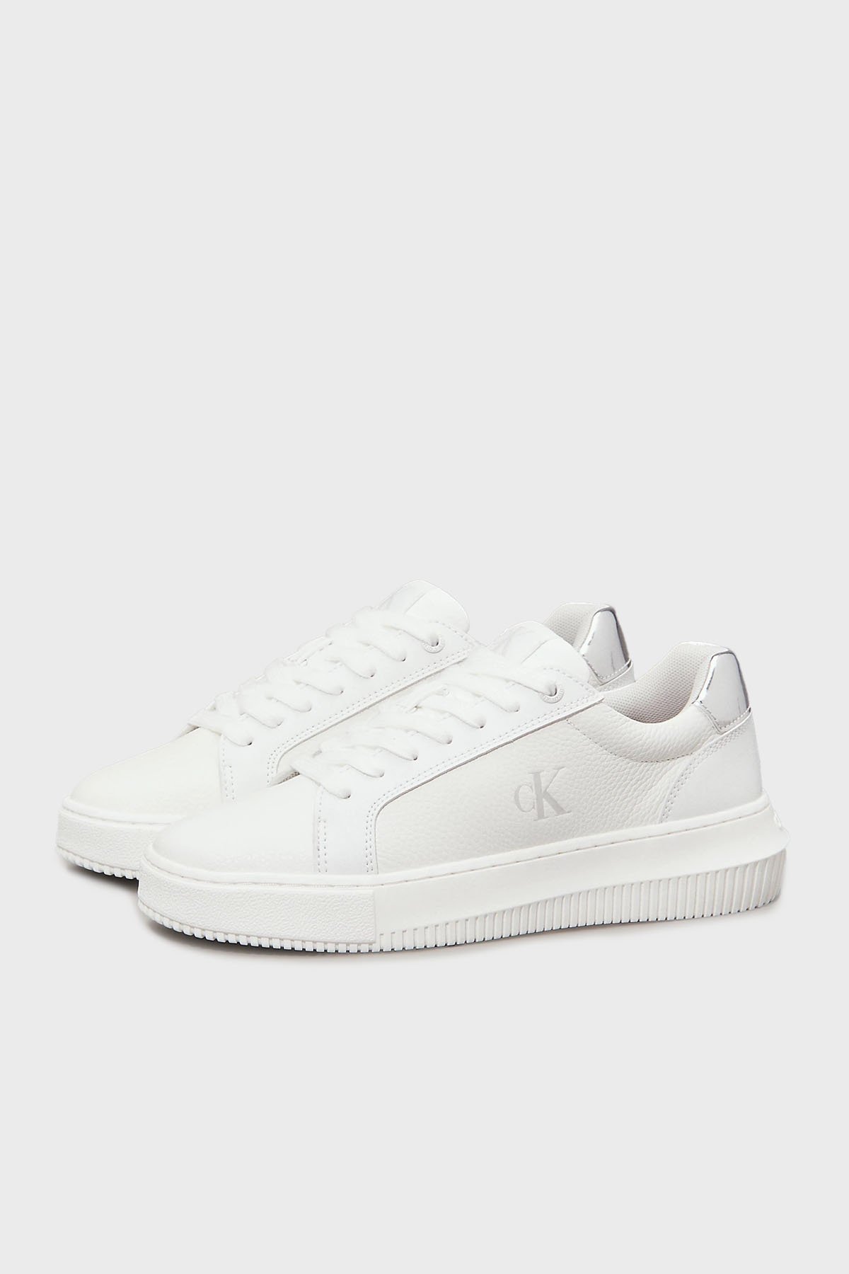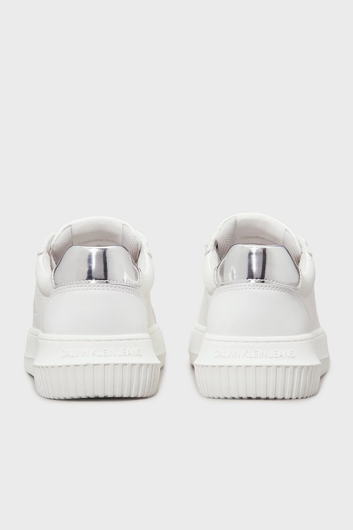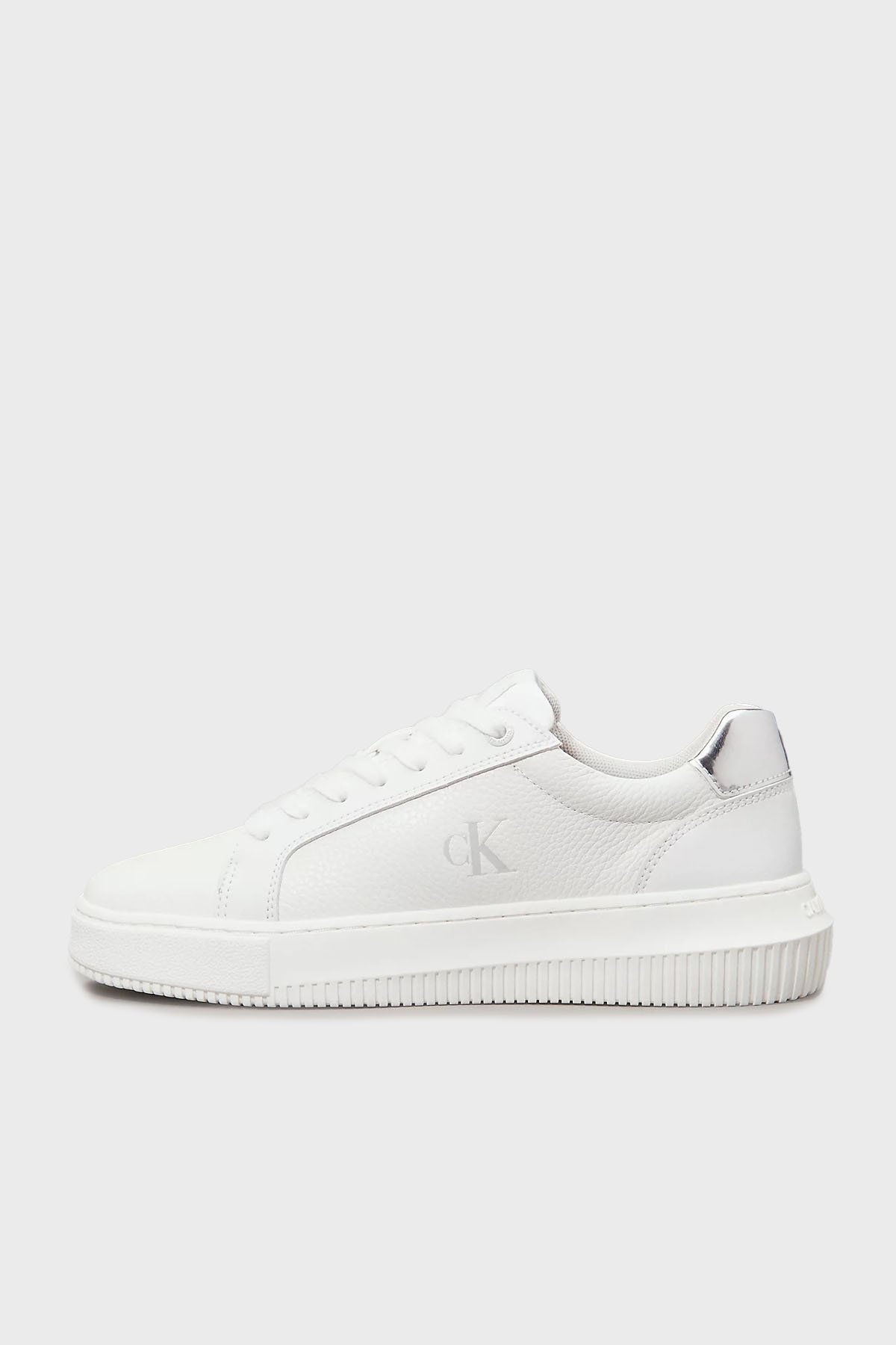 Logolu Deri Sneaker YW0YW017690LI Bayan Ayakkabı YW0YW01769 0LI BEYAZ-GÜMÜŞ