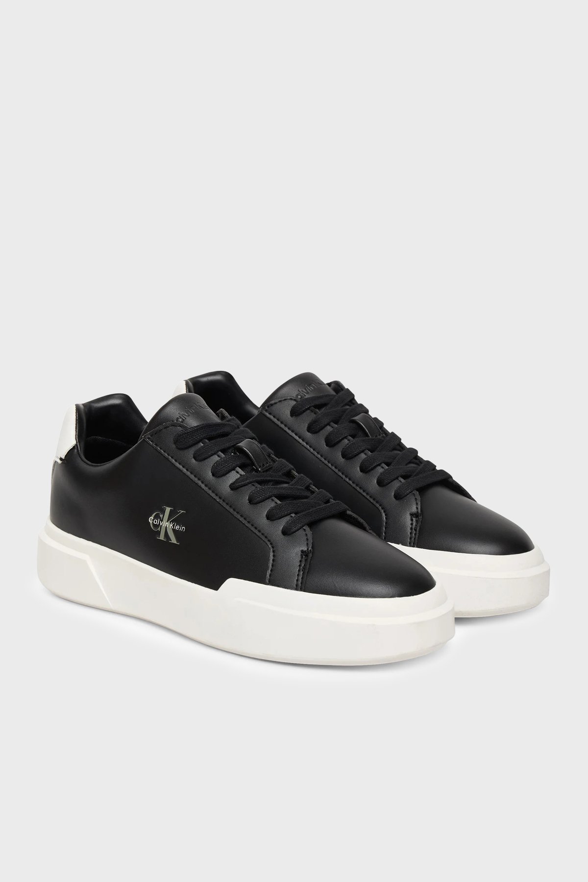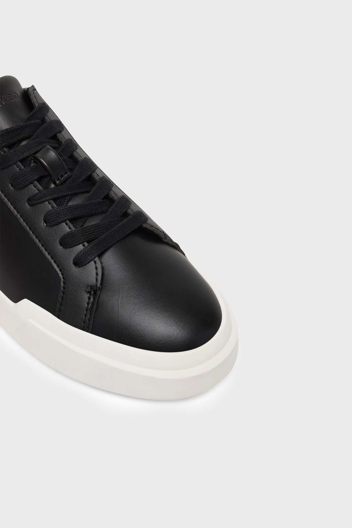 Logolu Deri Sneaker YW0YW0194706W Kadın Ayakkabı YW0YW01947 06W SİYAH