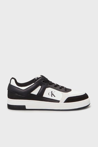 Logolu Deri ve Süet Detaylı Sneaker YM0YM0130801W Erkek Ayakkabı YM0YM01308 01W BEYAZ-SİYAH