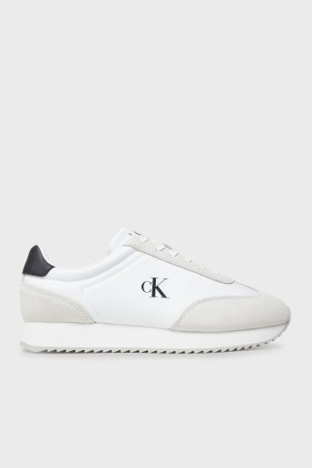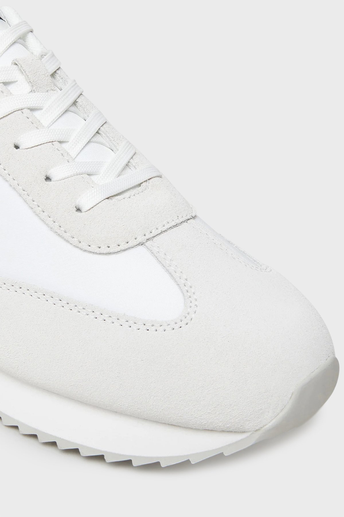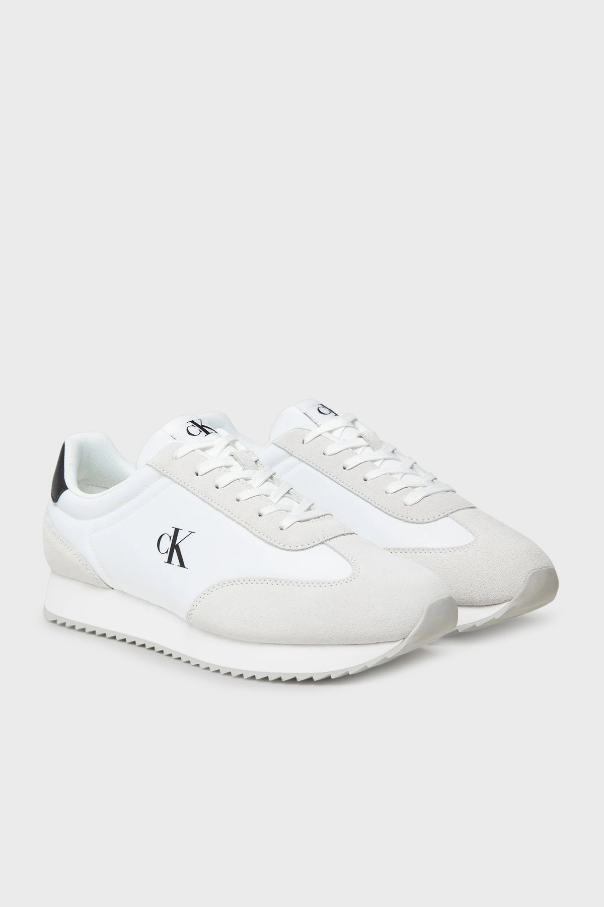 Logolu Deri ve Süet Karışımlı Sneaker YM0YM0132501W Erkek Ayakkabı YM0YM01325 01W BEYAZ-SİYAH