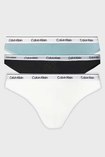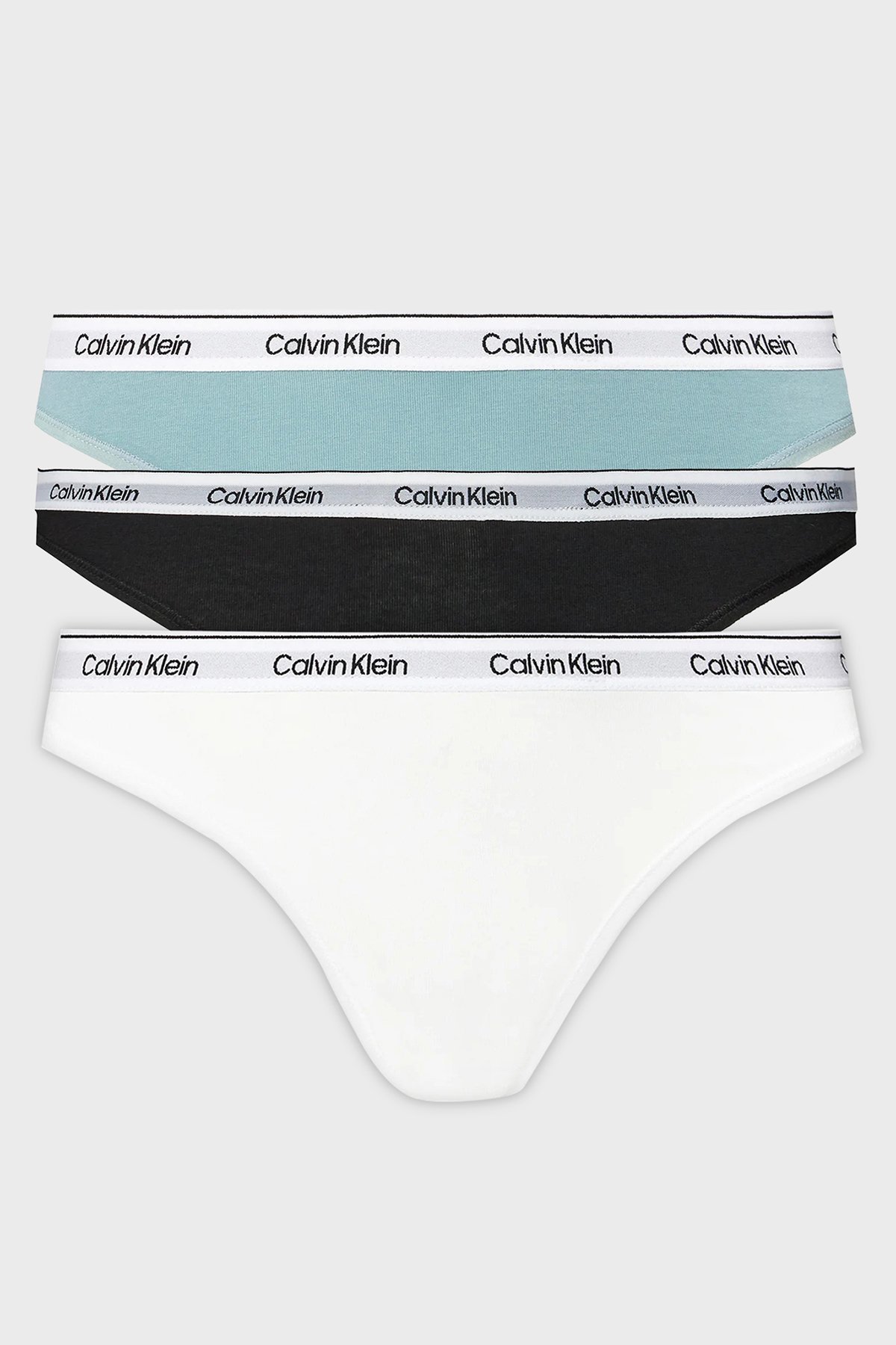 Logolu Elastik Bel Bantlı Pamuklu 3 Pack 000QD5209EWAC Bayan Külot 000QD5209E WAC Siyah-Beyaz-Açık Mavi