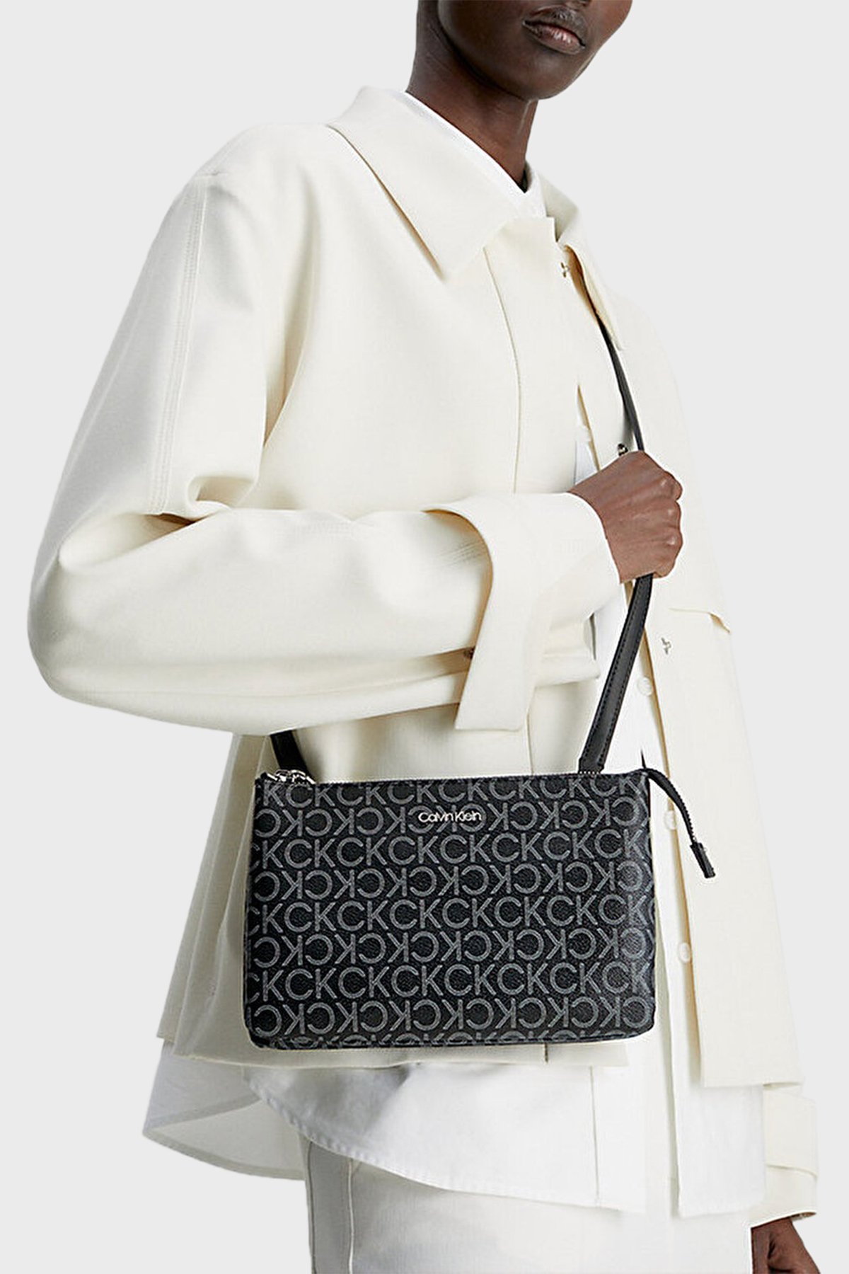 Logolu Fermuarlı Ayarlanabilir Omuz Askılı Bayan Çanta K60K609417 0GJ SİYAH