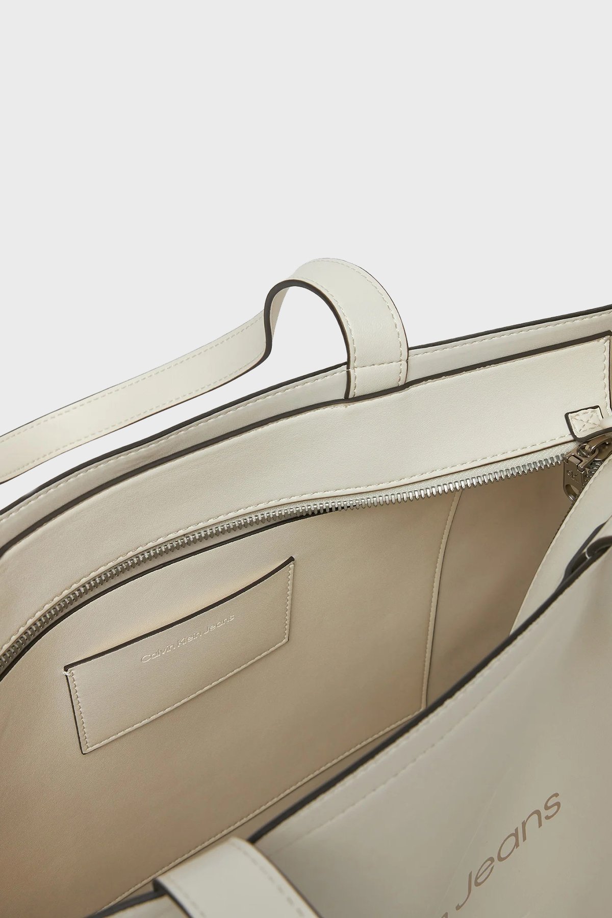 Logolu Fermuarlı Büyük K60K612222YAS Bayan Çanta K60K612222 YAS BEYAZ