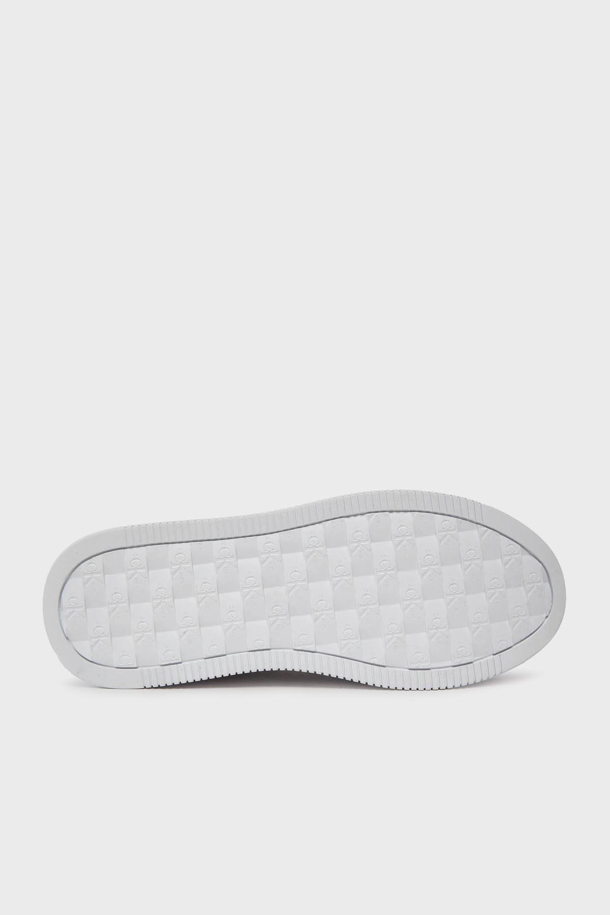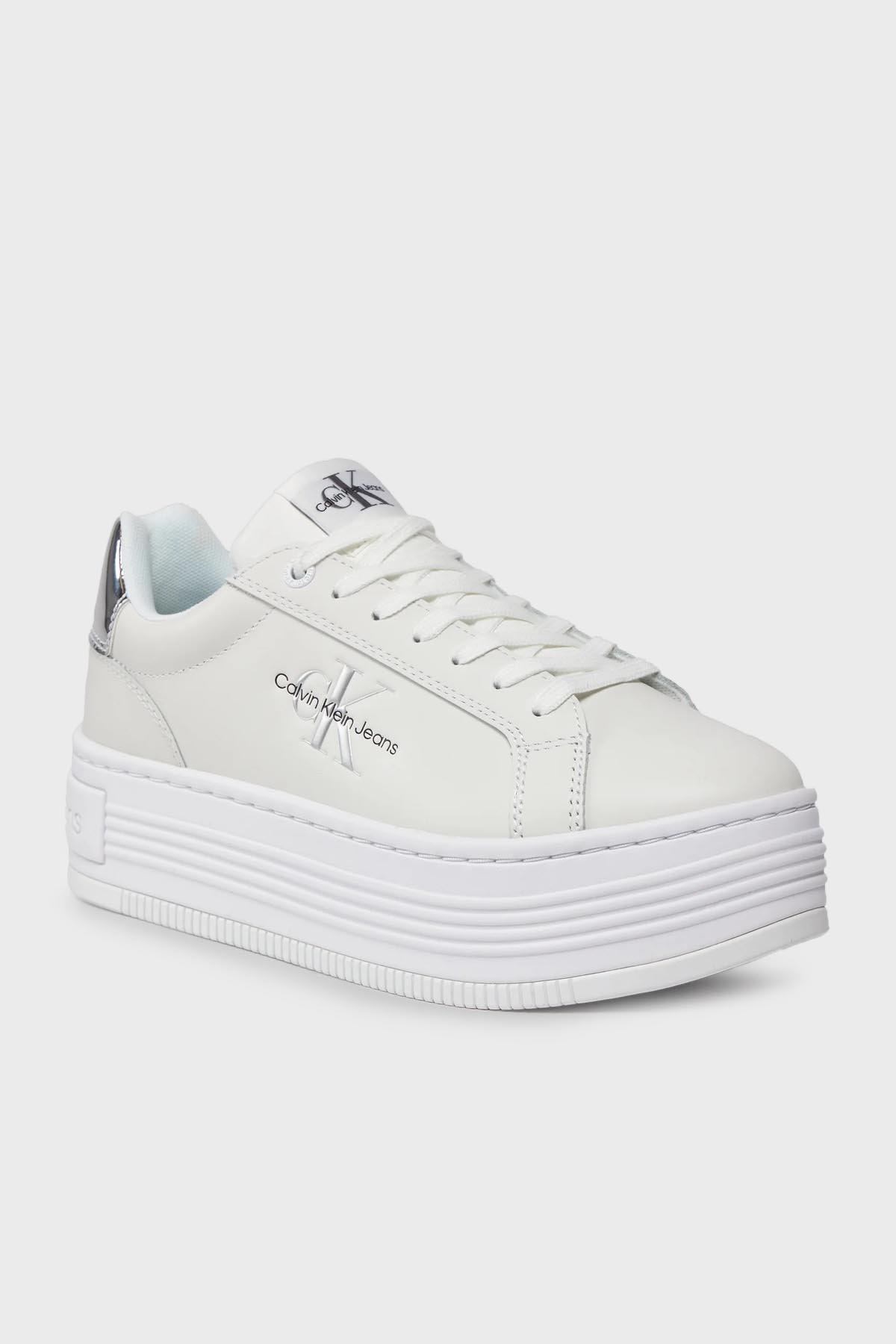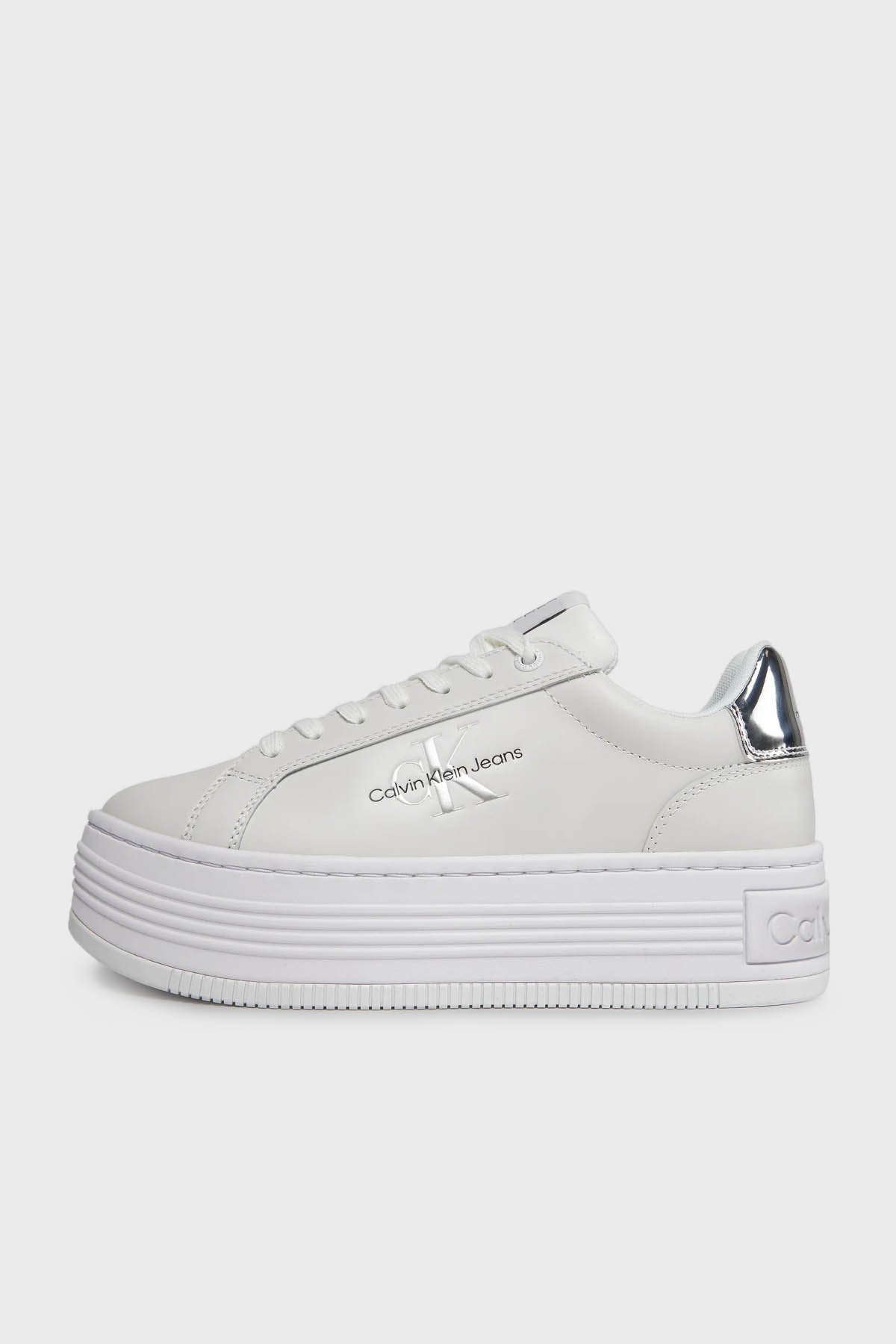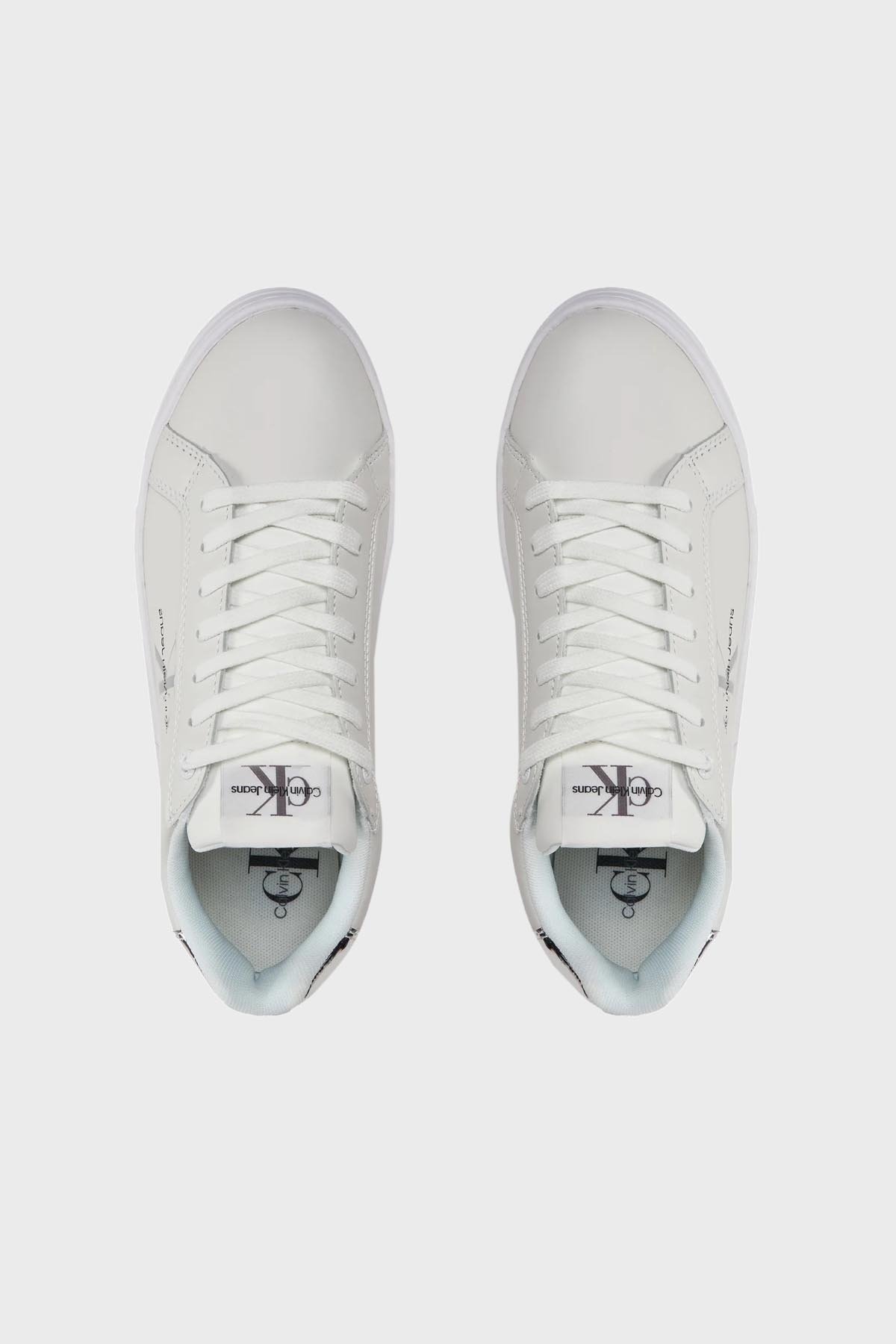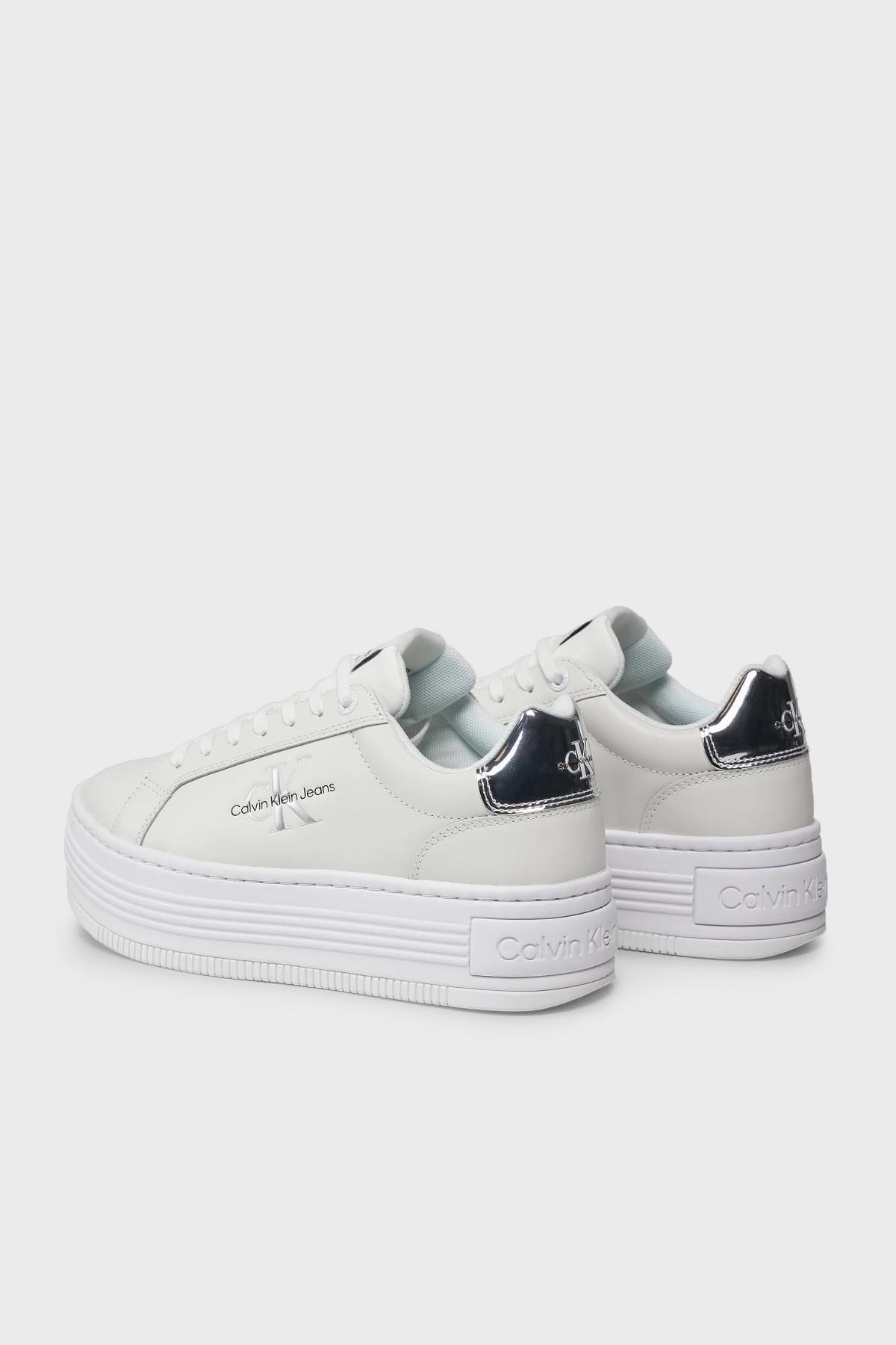 Logolu Hakiki Deri Platform Topuk Sneaker YW0YW0145701V Bayan Ayakkabı YW0YW01457 01V BEYAZ-GÜMÜŞ