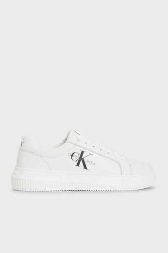 Logolu Hakiki Deri Sneaker YW0YW00823YBR Bayan Ayakkabı YW0YW00823 YBR BEYAZ