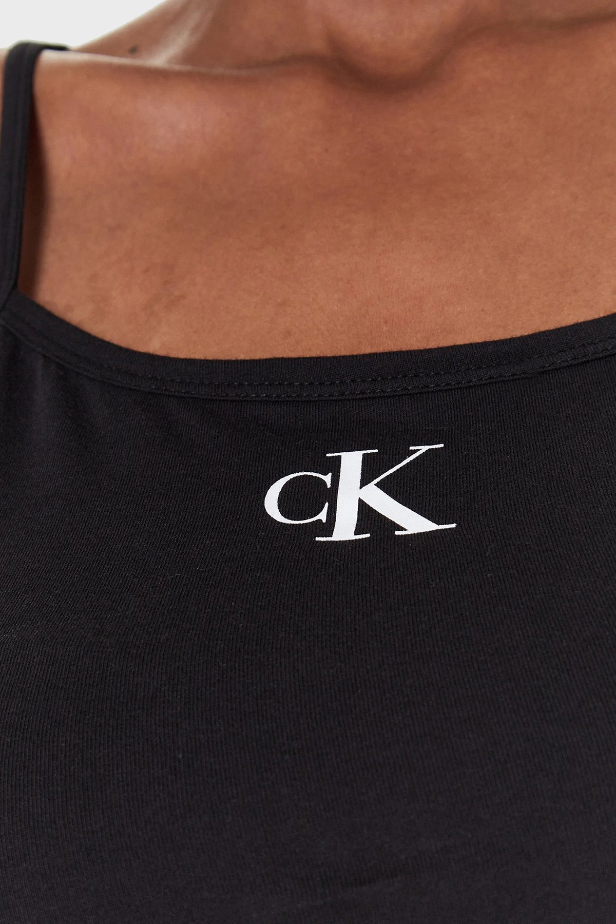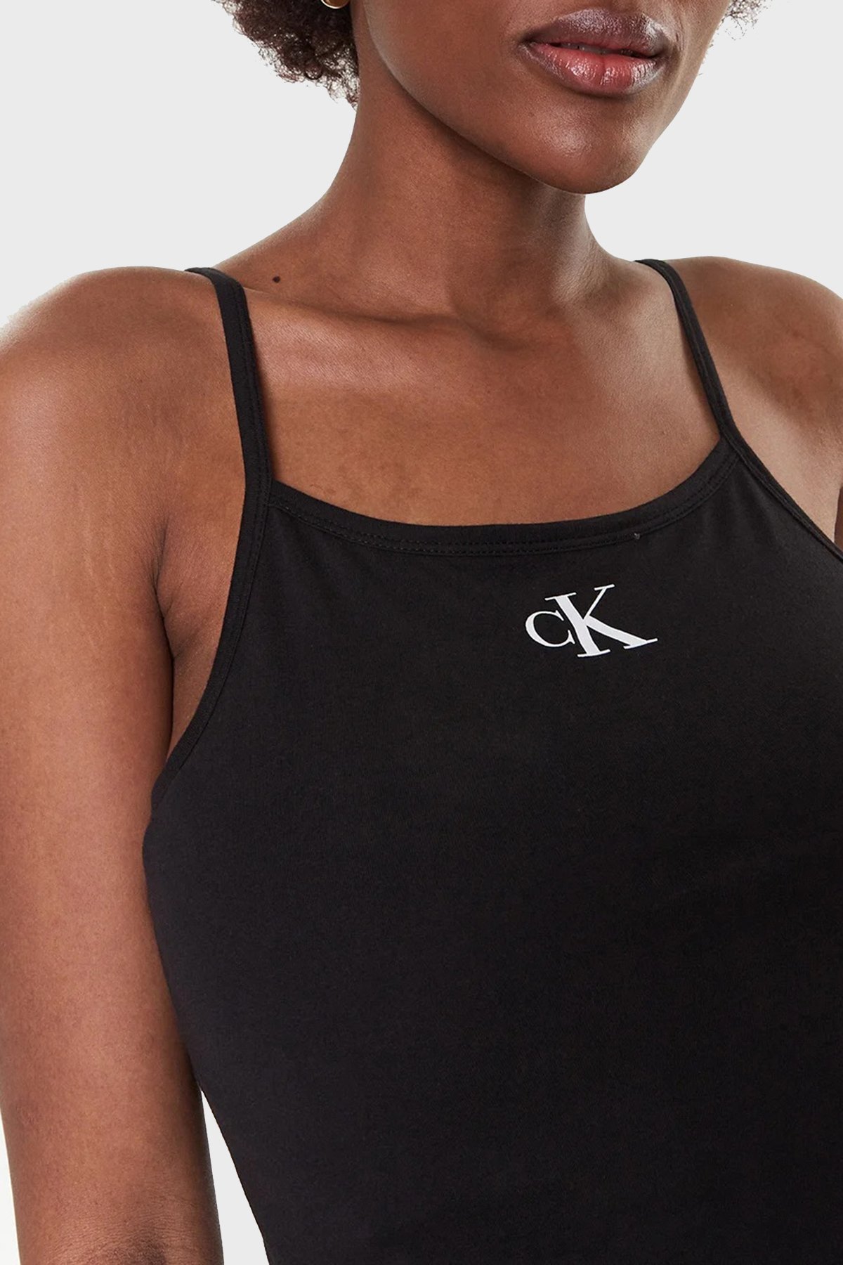 Logolu İnce Askılı Pamuklu Regular Fit Bodycon KW0KW02093BEH Bayan Elbise KW0KW02093 BEH SİYAH