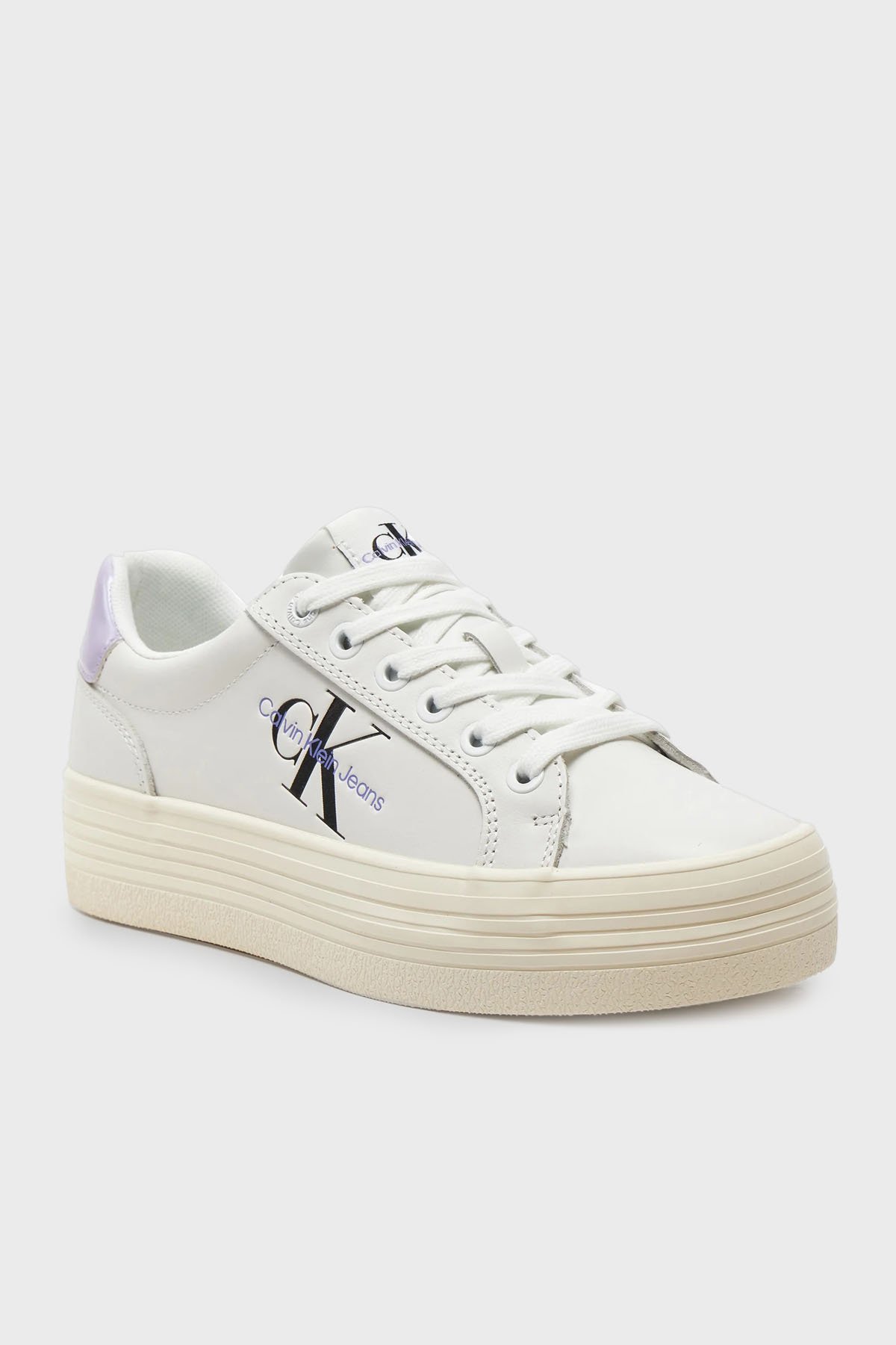 Logolu Kalın Tabanlı Deri Sneaker YW0YW014740LB Bayan Ayakkabı YW0YW01474 0LB Krem-Lila