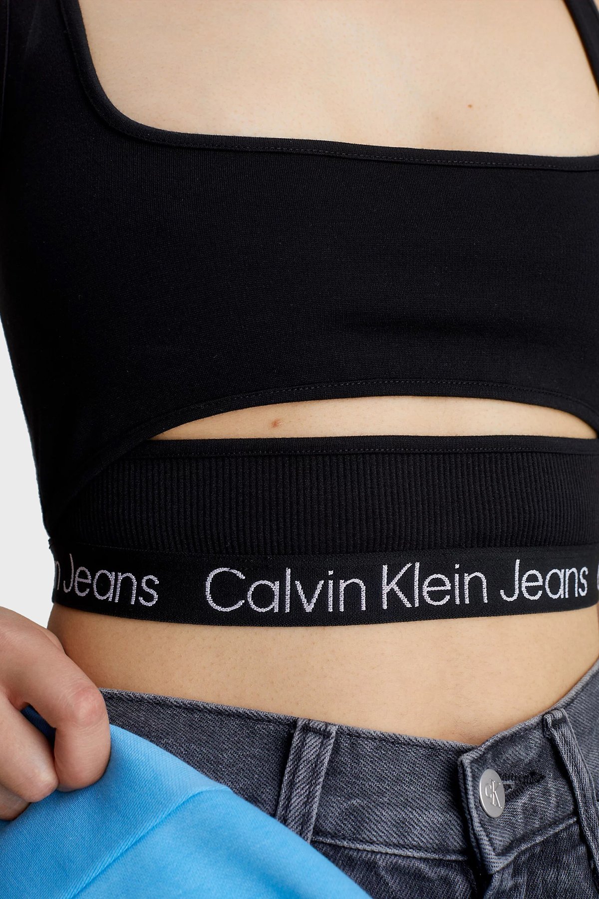 Logolu Kesikli Slim Fit Crop J20J220772BEH Bayan Top J20J220772 BEH SİYAH