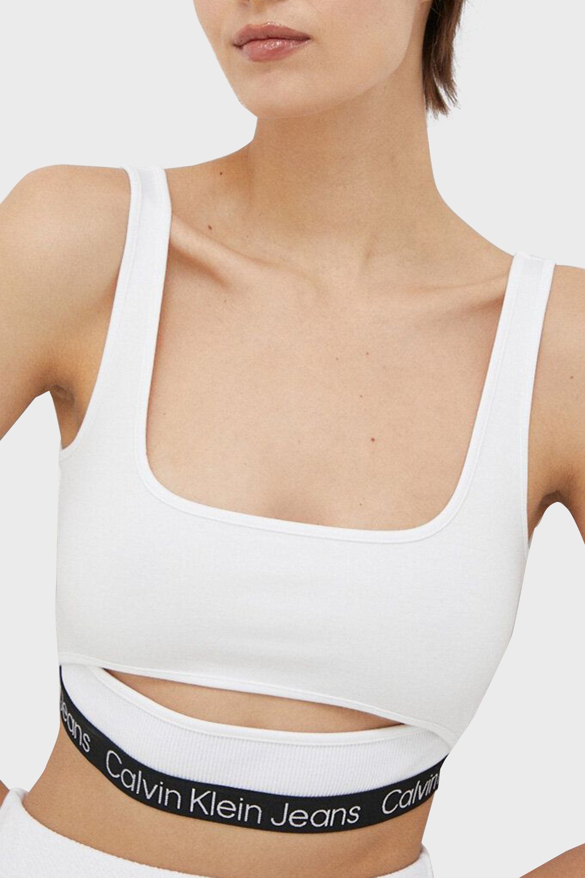 Logolu Kesikli Slim Fit Crop J20J220772YAF Bayan Top J20J220772 YAF BEYAZ