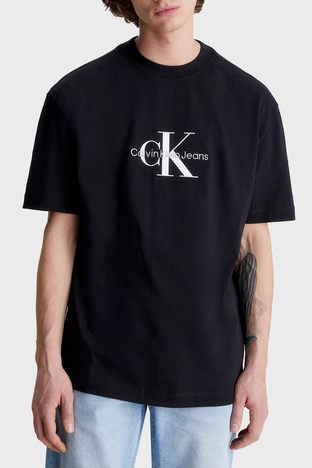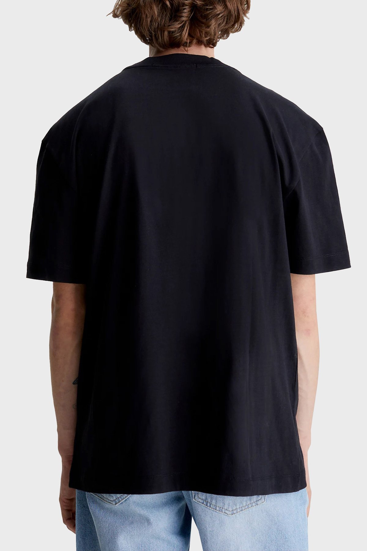 Logolu Organik Pamuklu Bisiklet Yaka Oversize Erkek T Shirt J30J323307 BEH SİYAH