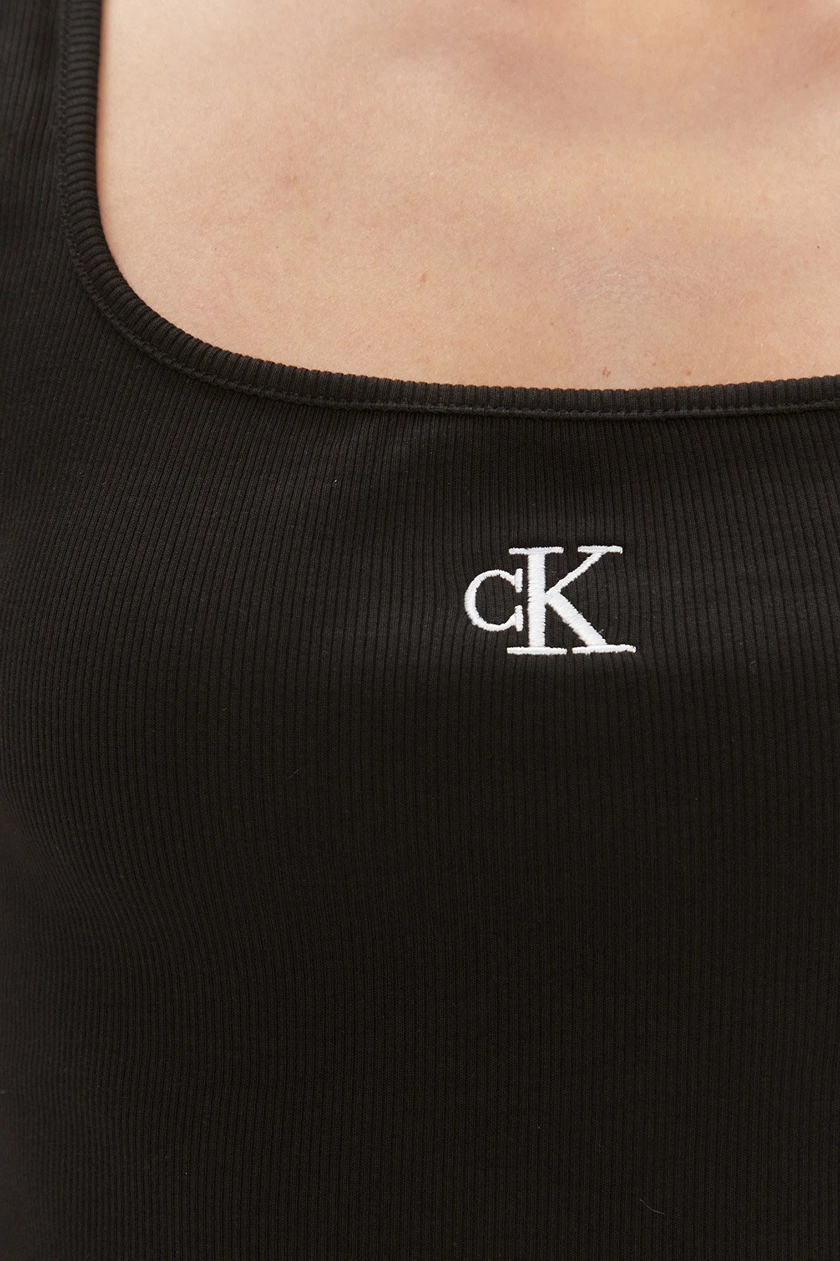 Logolu Pamuk Karışımlı Relaxed Fit Kare Yaka J20J223192BEH Bayan Top J20J223192 BEH SİYAH