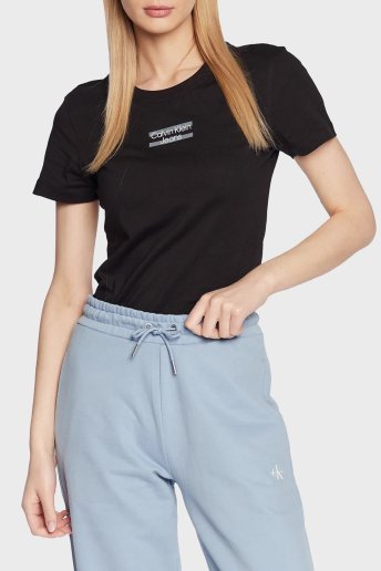 Logolu Pamuklu Bisiklet Yaka Regular Fit J20J220720BEH Bayan T Shirt J20J220720 BEH SİYAH