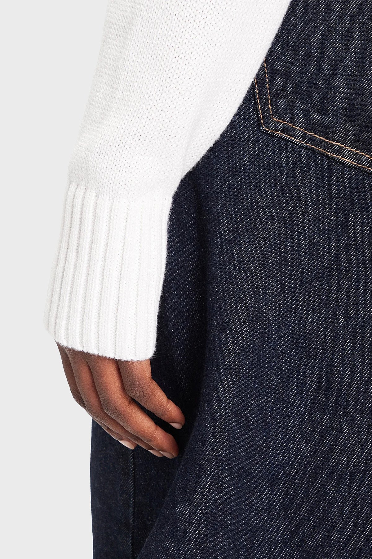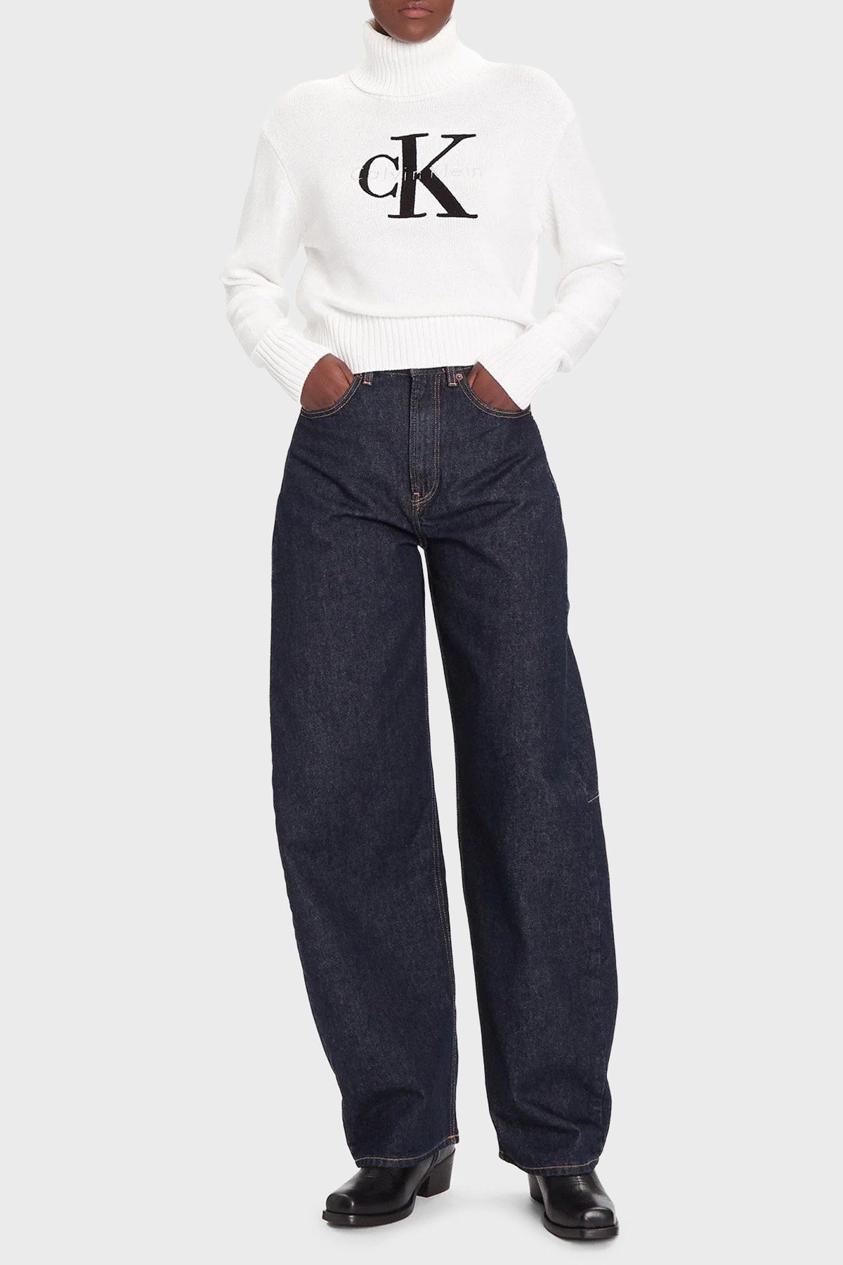 Logolu Pamuklu Relaxed Fit Balıkçı Yaka LV047D354GYAA Bayan Kazak LV047D354G YAA BEYAZ