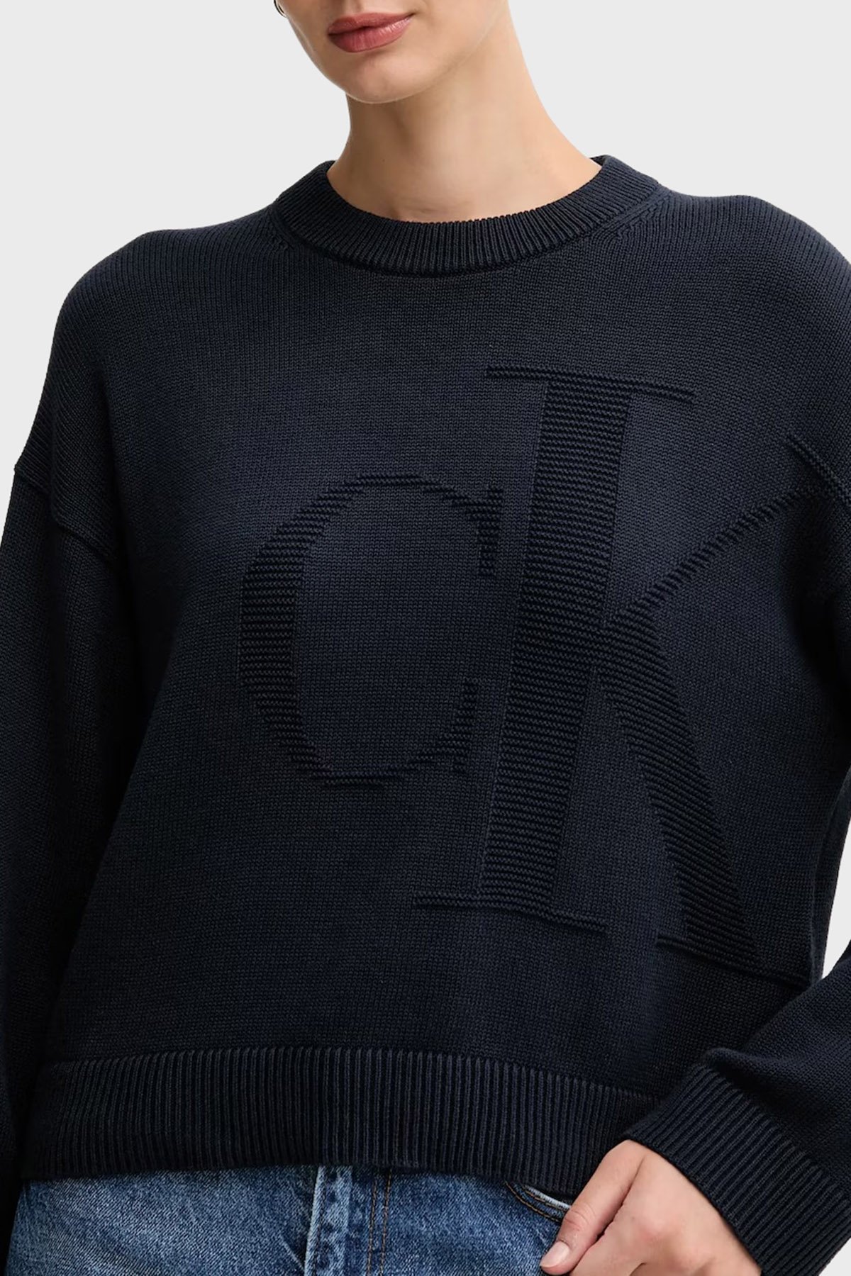 Logolu Pamuklu Relaxed Fit Bisiklet Yaka Örme LV047D304GCEF Bayan Kazak LV047D304G CEF LACİVERT