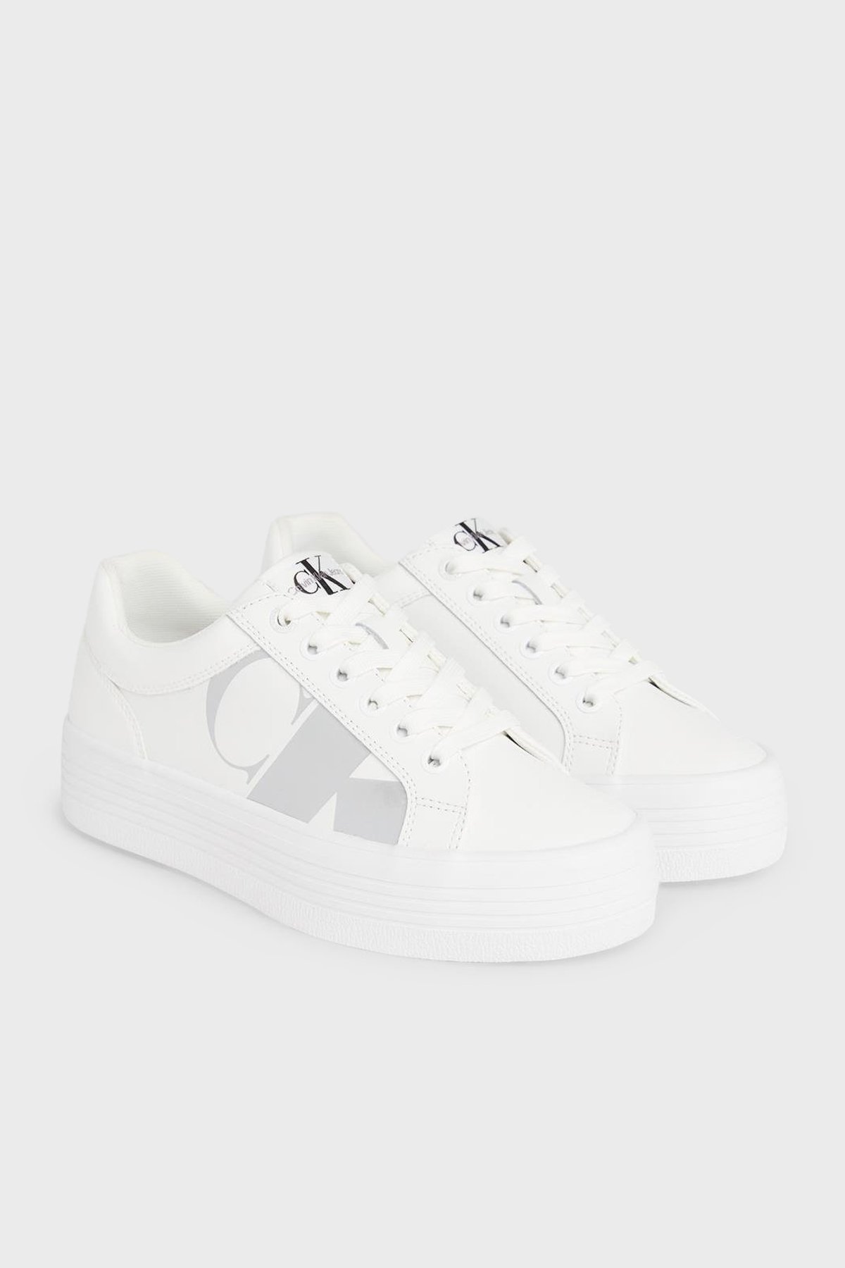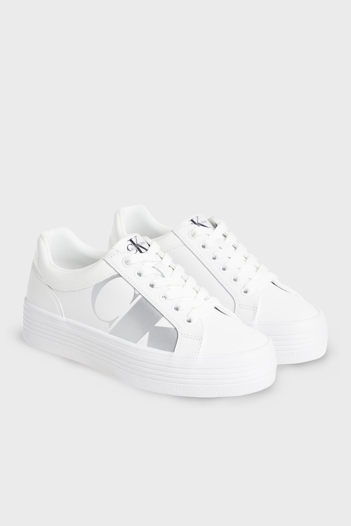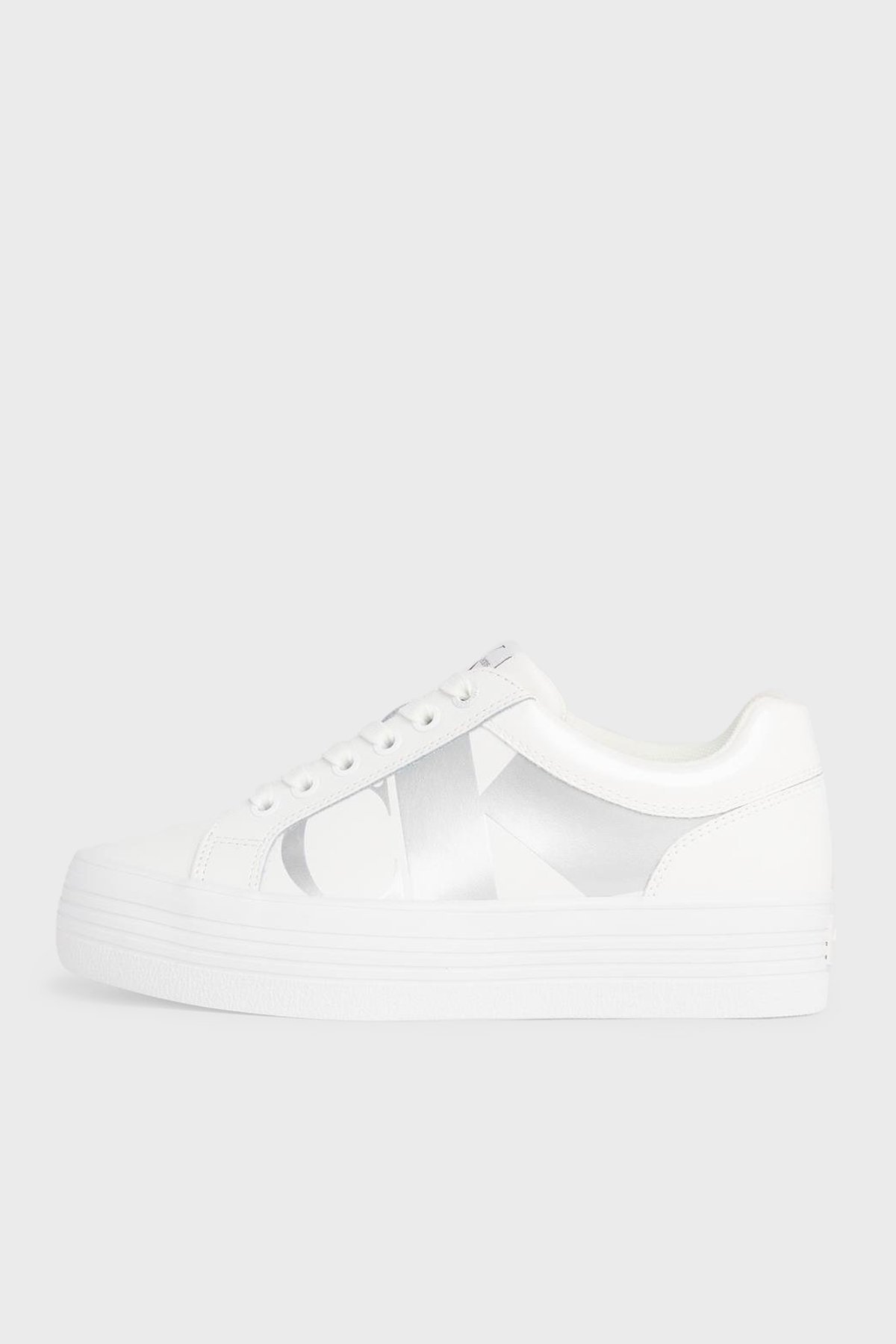 Logolu Platform Sneaker YW0YW0141401V Bayan Ayakkabı YW0YW01414 01V BEYAZ-GÜMÜŞ