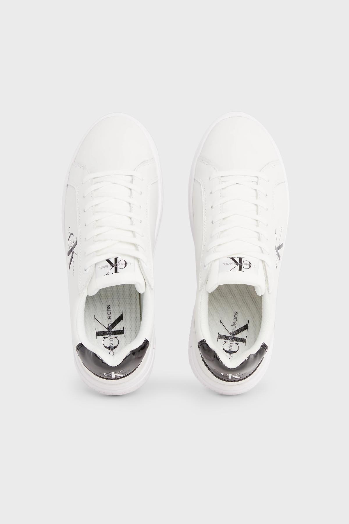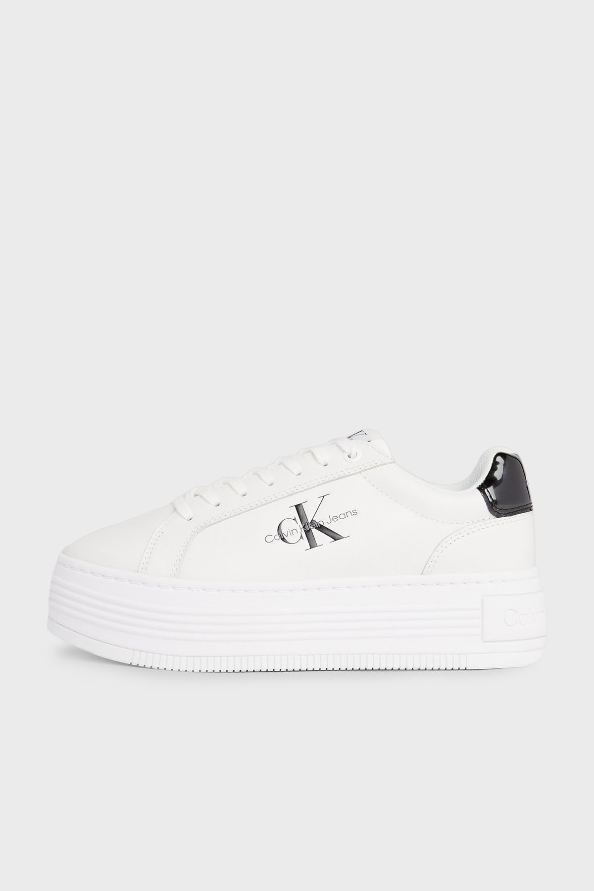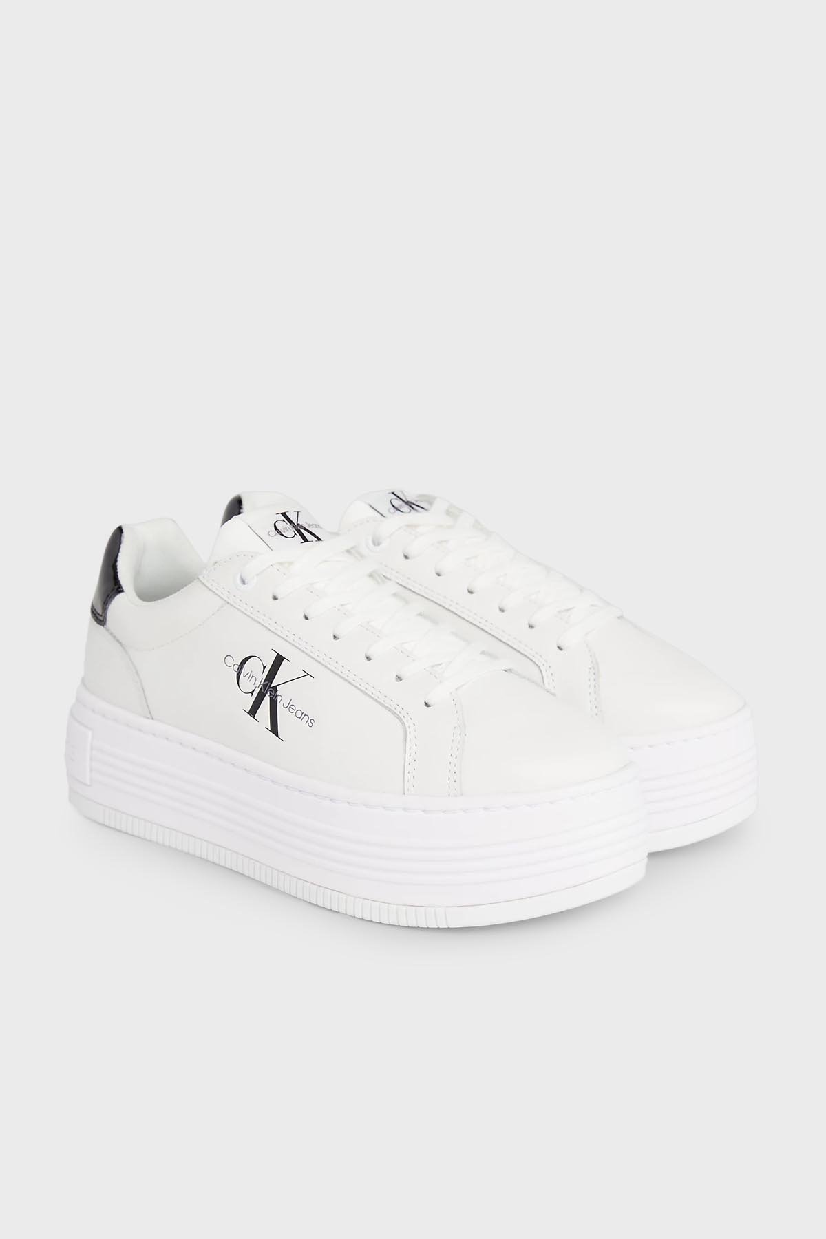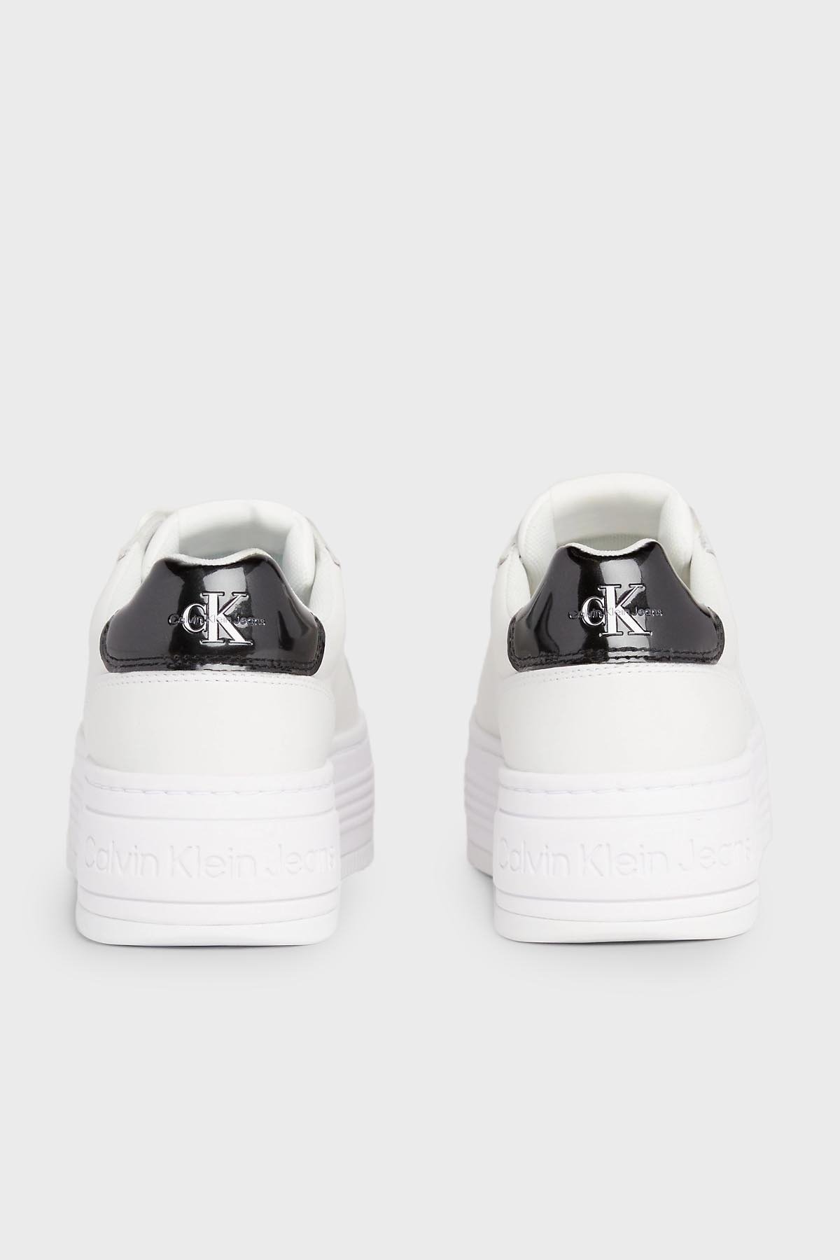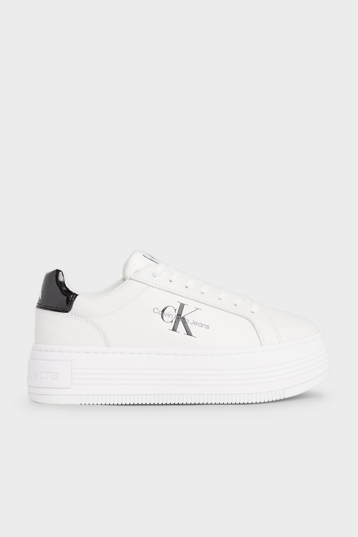 Logolu Platform Topuk Deri Sneaker YW0YW0143101W Bayan Ayakkabı YW0YW01431 01W BEYAZ-SİYAH