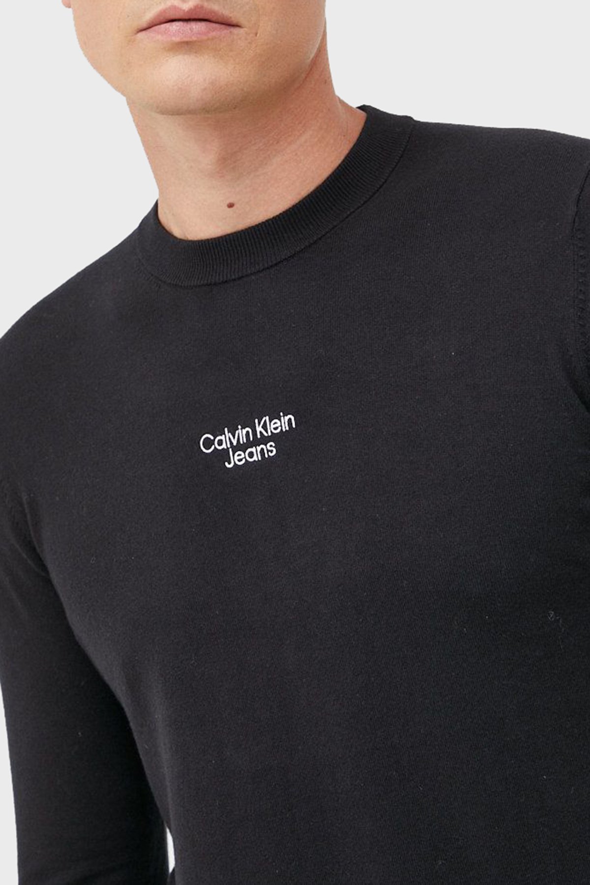Logolu Regular Fit Bisiklet Yaka Pamuklu Erkek Kazak J30J320618 BEH SİYAH