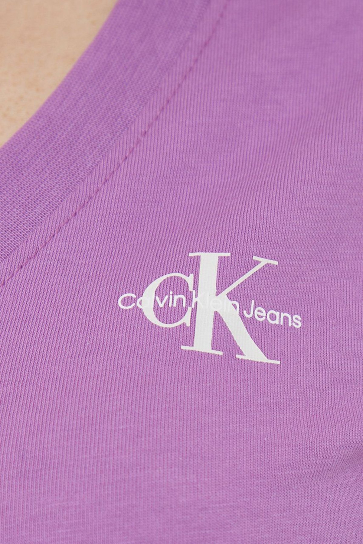 Logolu Slim Fit V Yaka % 100 Pamuk Bayan T Shirt J20J220303 VDR FUŞYA
