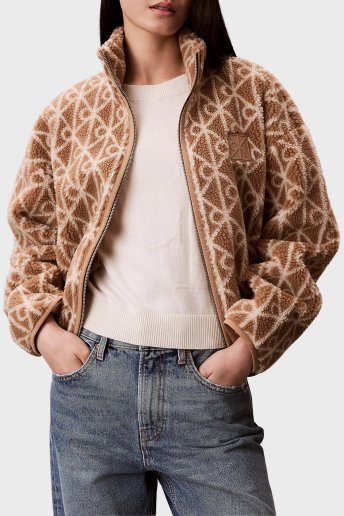 Logolu Relaxed Fit Dik Yaka Peluş LV144E226GK2U Bayan Ceket LV144E226G K2U SÜTLÜ KAHVE