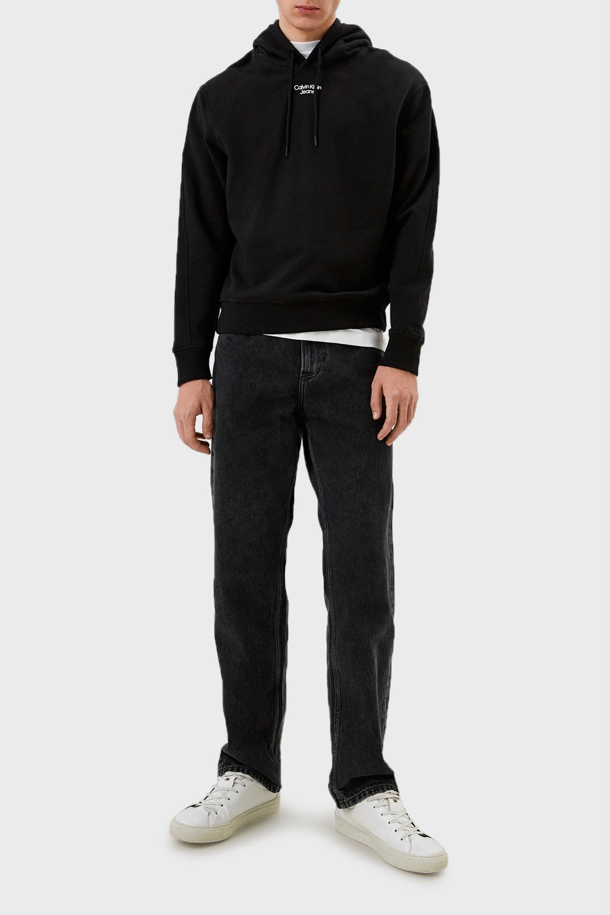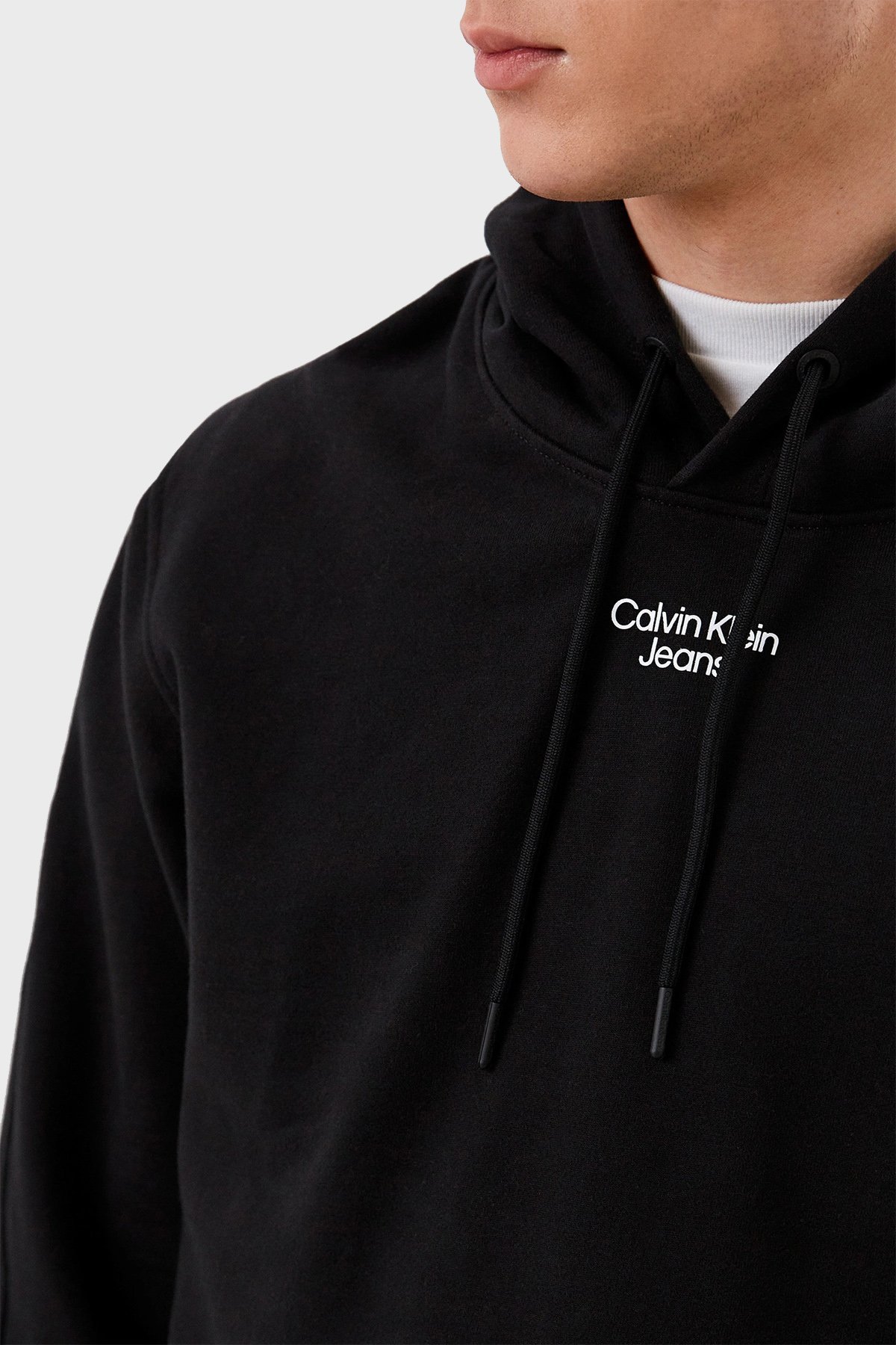 Logolu Relaxed Fit Kapüşonlu % 100 Pamuk Erkek Sweat J30J320604 BEH SİYAH