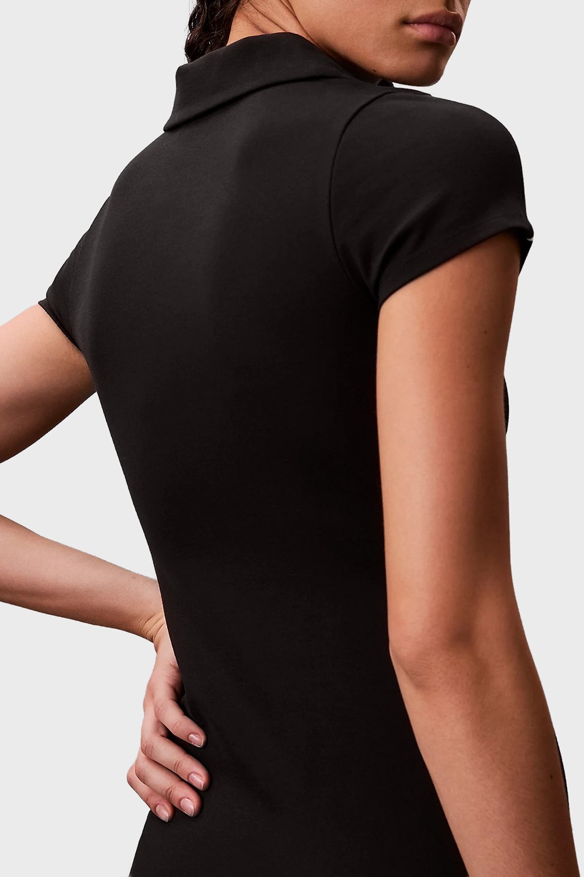 Logolu Slim Fit Yarım Fermuarlı Mini Polo Yaka LV047E213GUB1 Bayan Elbise LV047E213G UB1 SİYAH