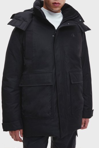 Logolu Su Geçirmez Çıkarılabilir Kapüşonlu Regular Fit Erkek Mont J30J321969 BEH SİYAH