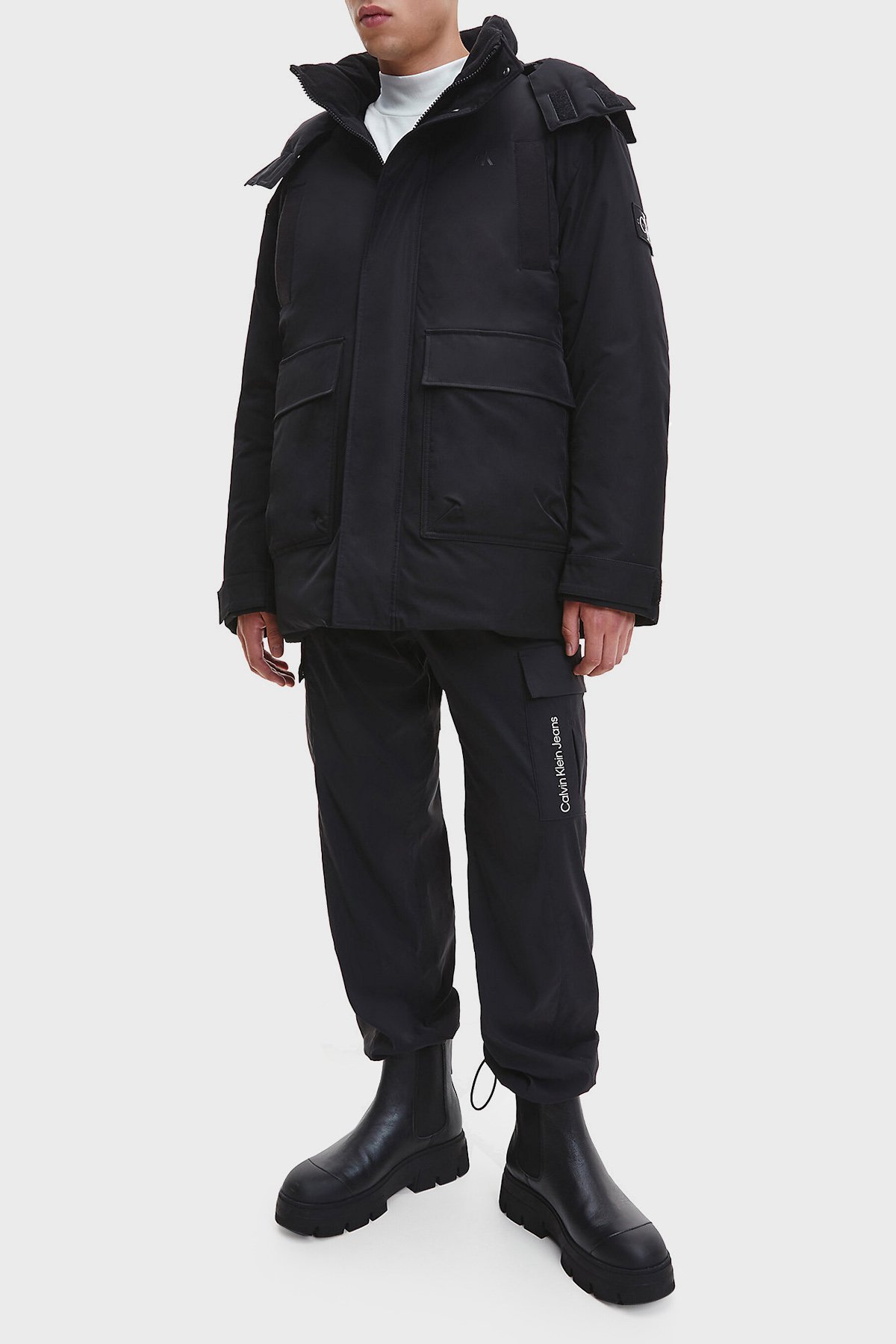 Logolu Su Geçirmez Çıkarılabilir Kapüşonlu Regular Fit Erkek Mont J30J321969 BEH SİYAH
