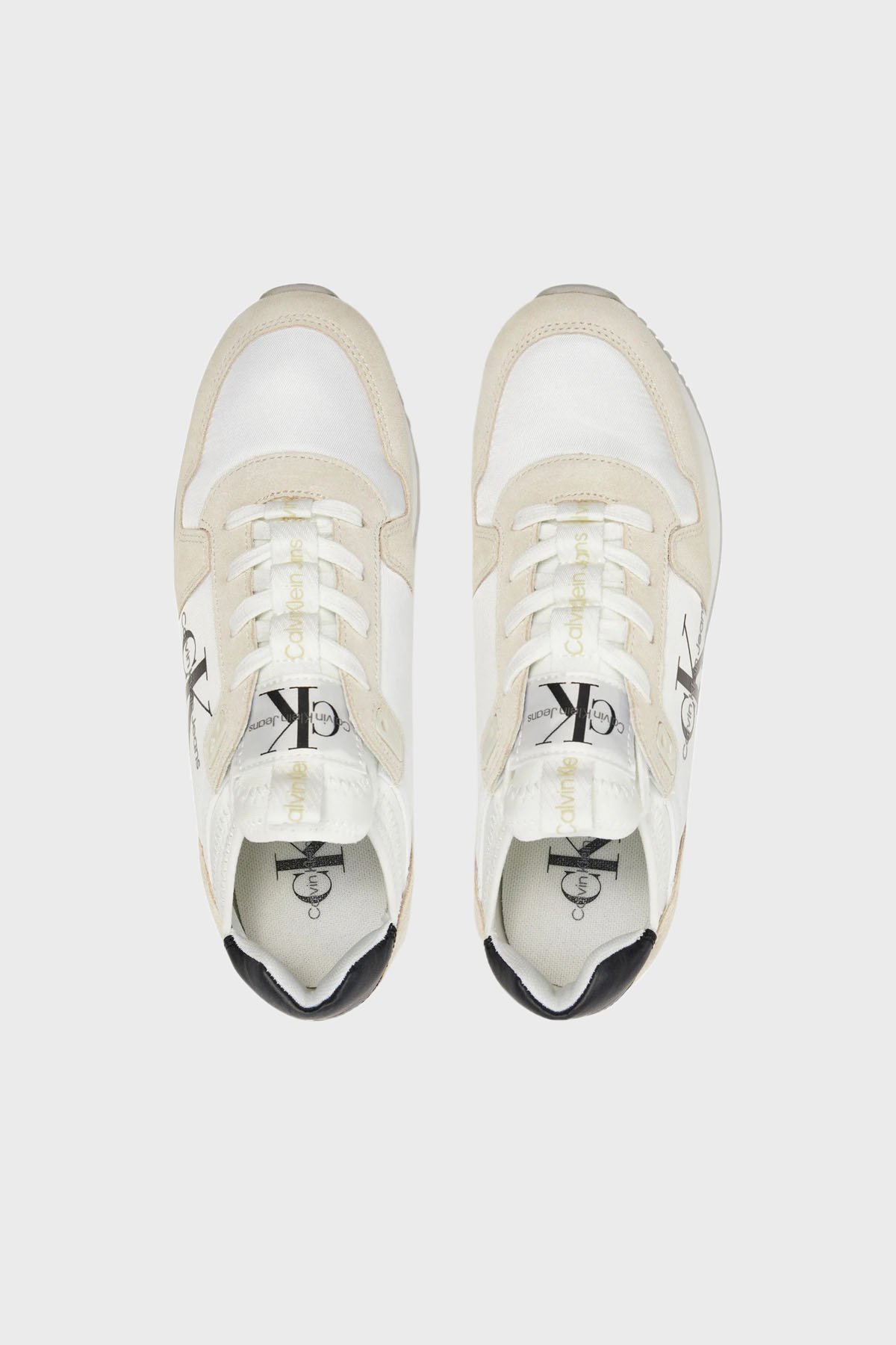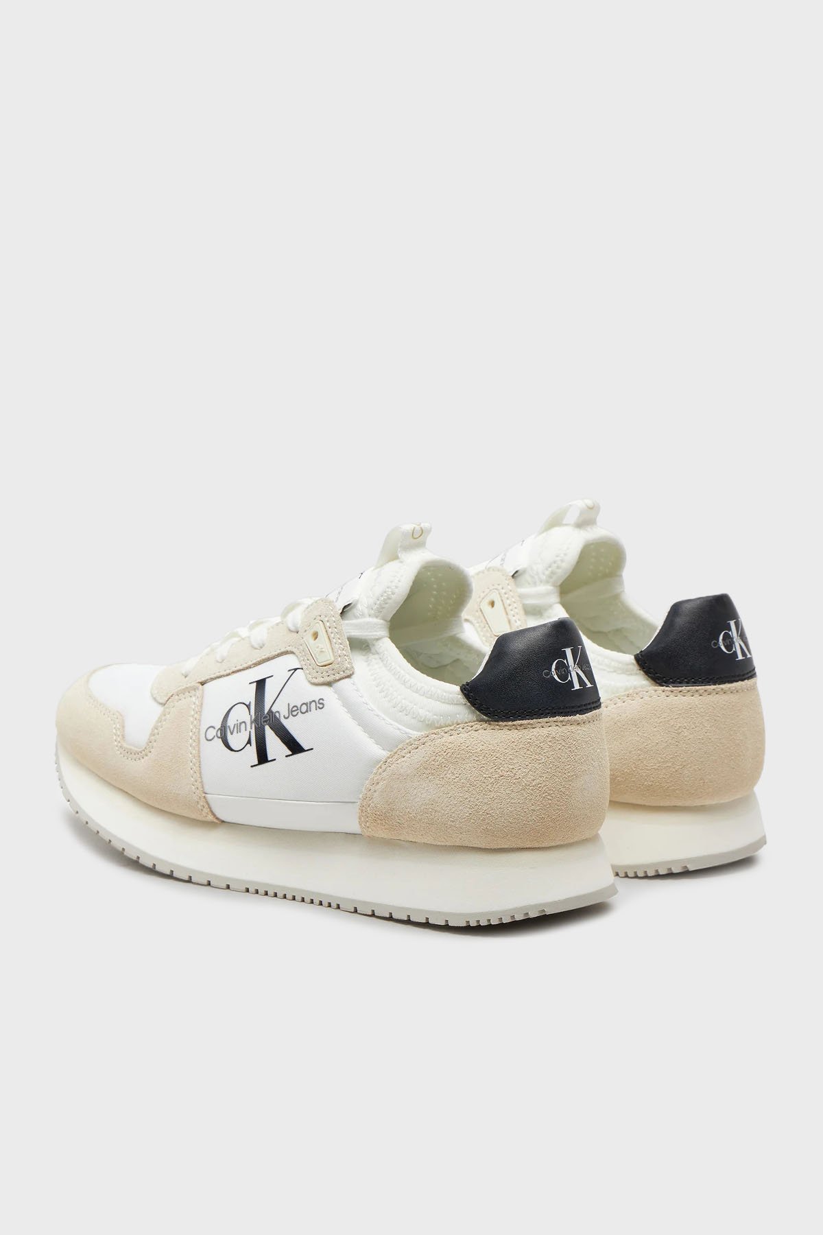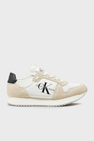 Logolu Süet Detaylı Sneaker YW0YW0084003A Bayan Ayakkabı YW0YW00840 03A Beyaz-Krem