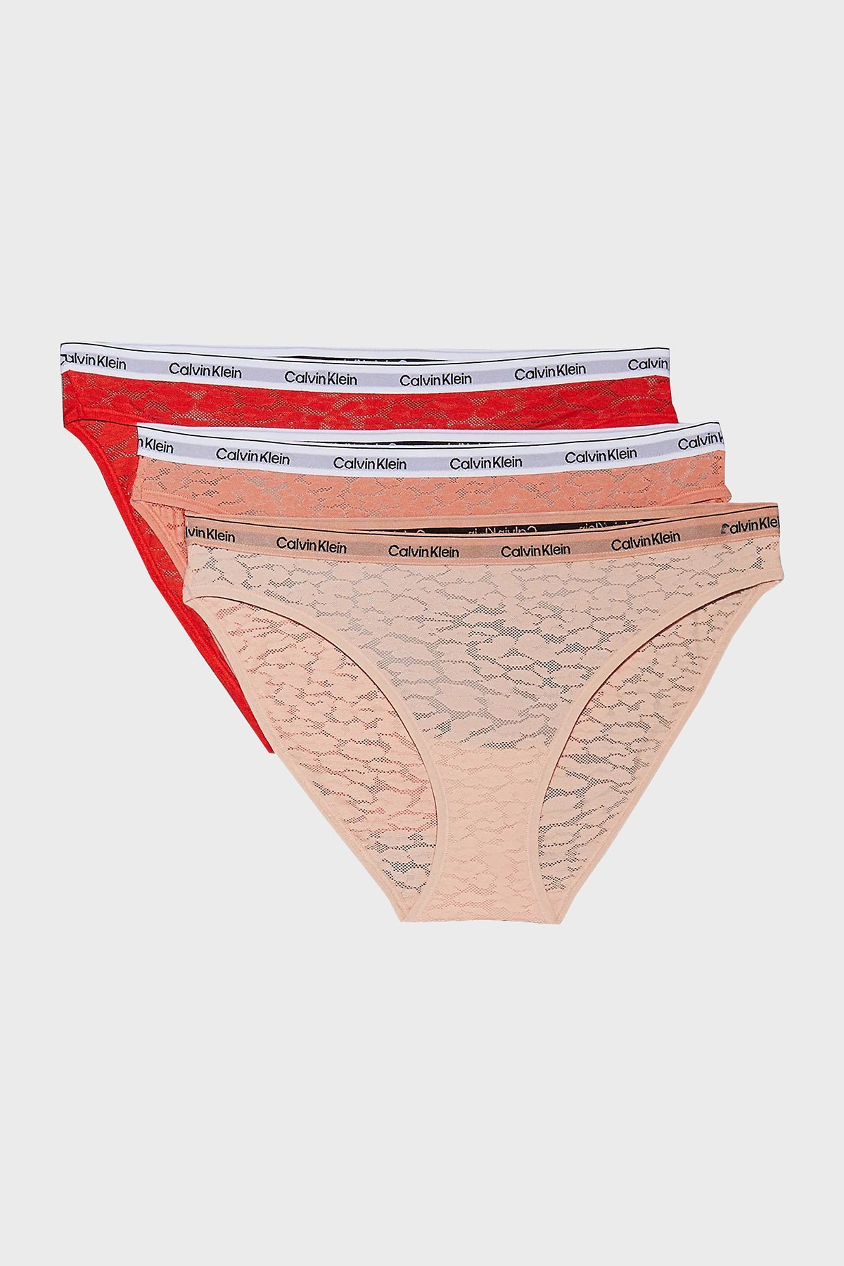 Logolu Yarı Şeffaf Tanga 3 Pack 000QD5069EW5R Bayan Külot 000QD5069E W5R Pudra-Pembe-Kırmızı