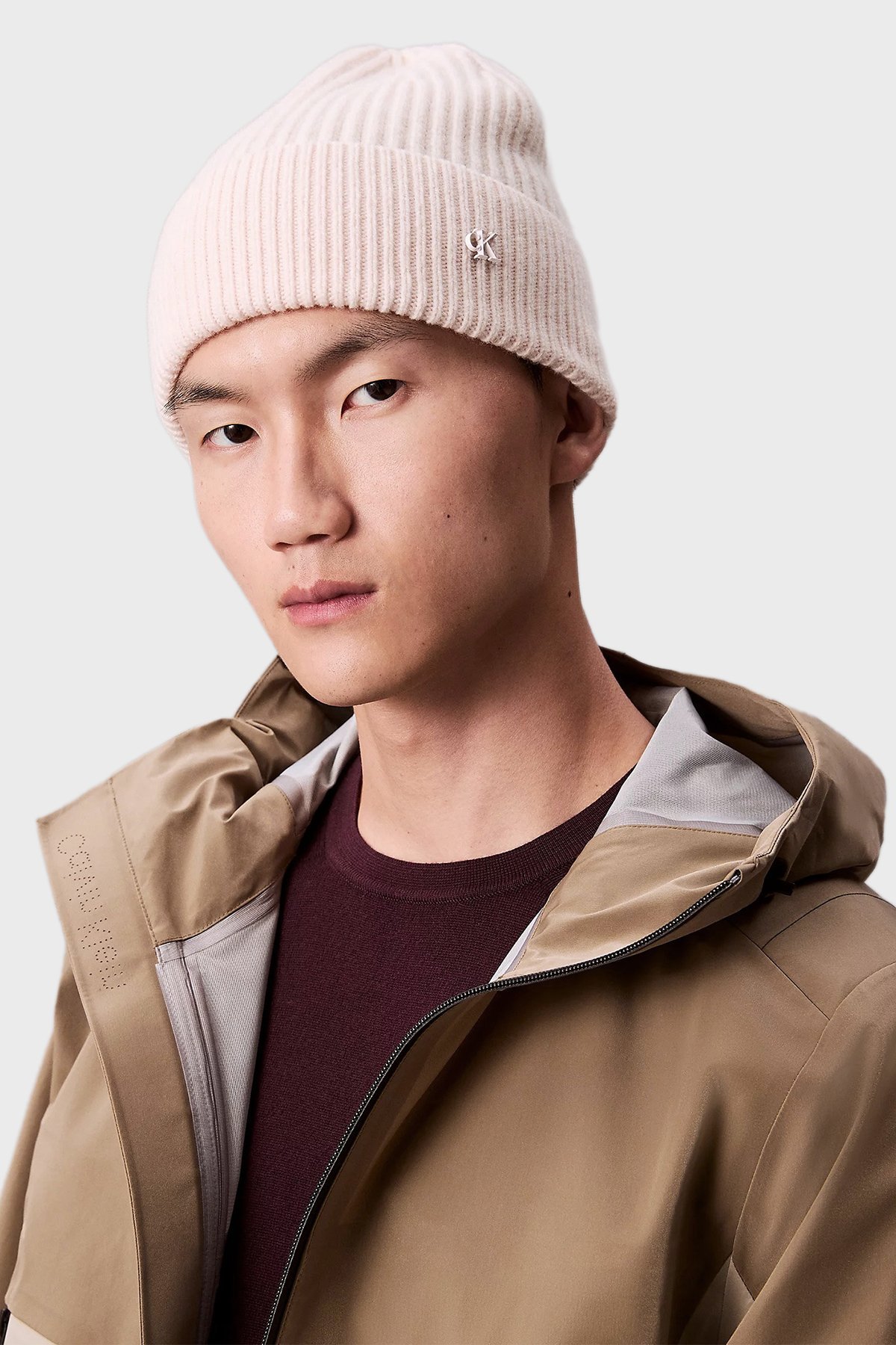 Logolu Yün Karışımlı Örme LV04D8032GWFI Erkek Bere LV04D8032G WFI PUDRA