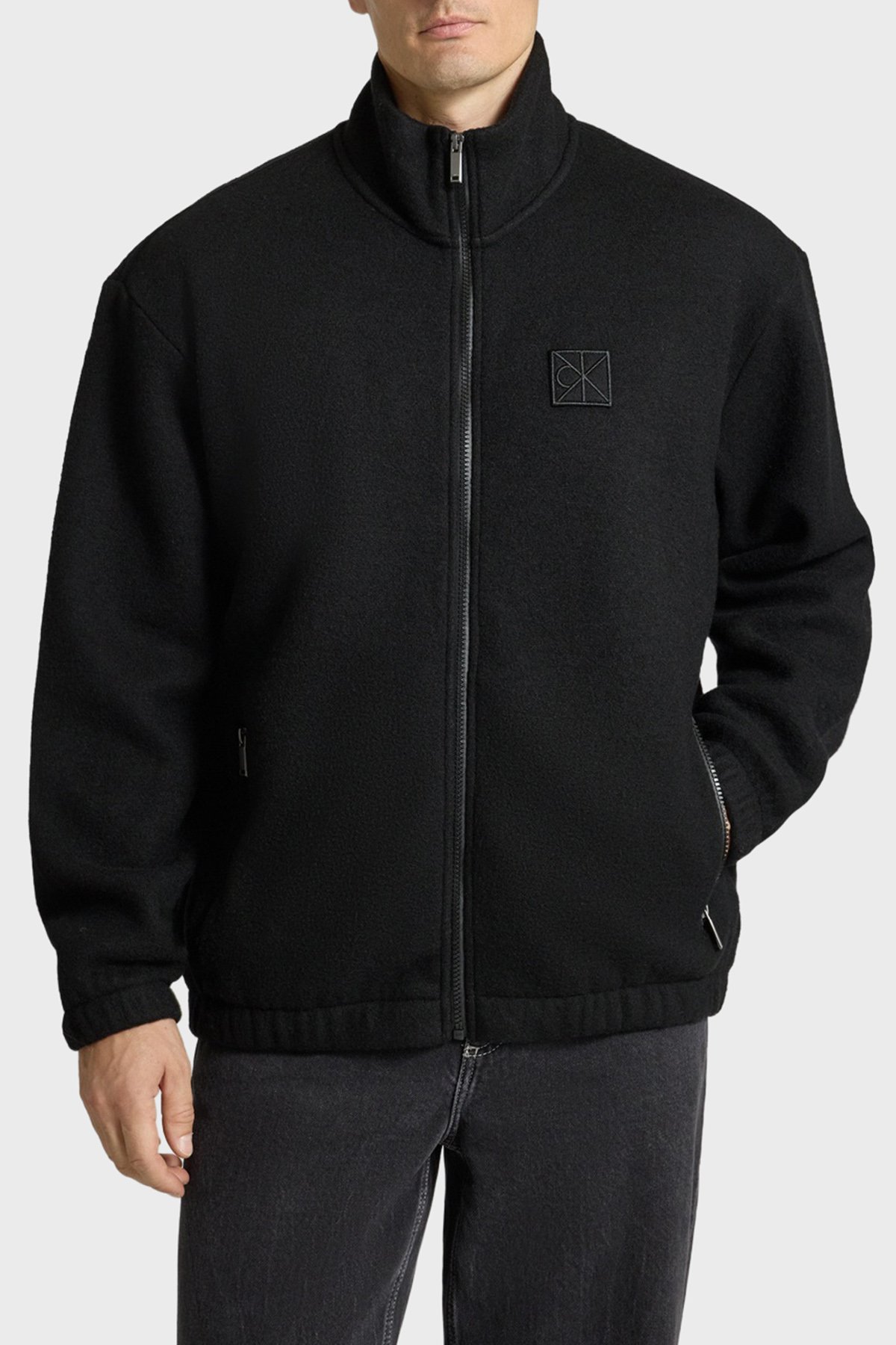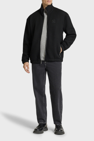Logolu Yün Karışımlı Oversize Dik Yaka Fermuarlı LV04LD218GUB1 Erkek Ceket LV04LD218G UB1 SİYAH