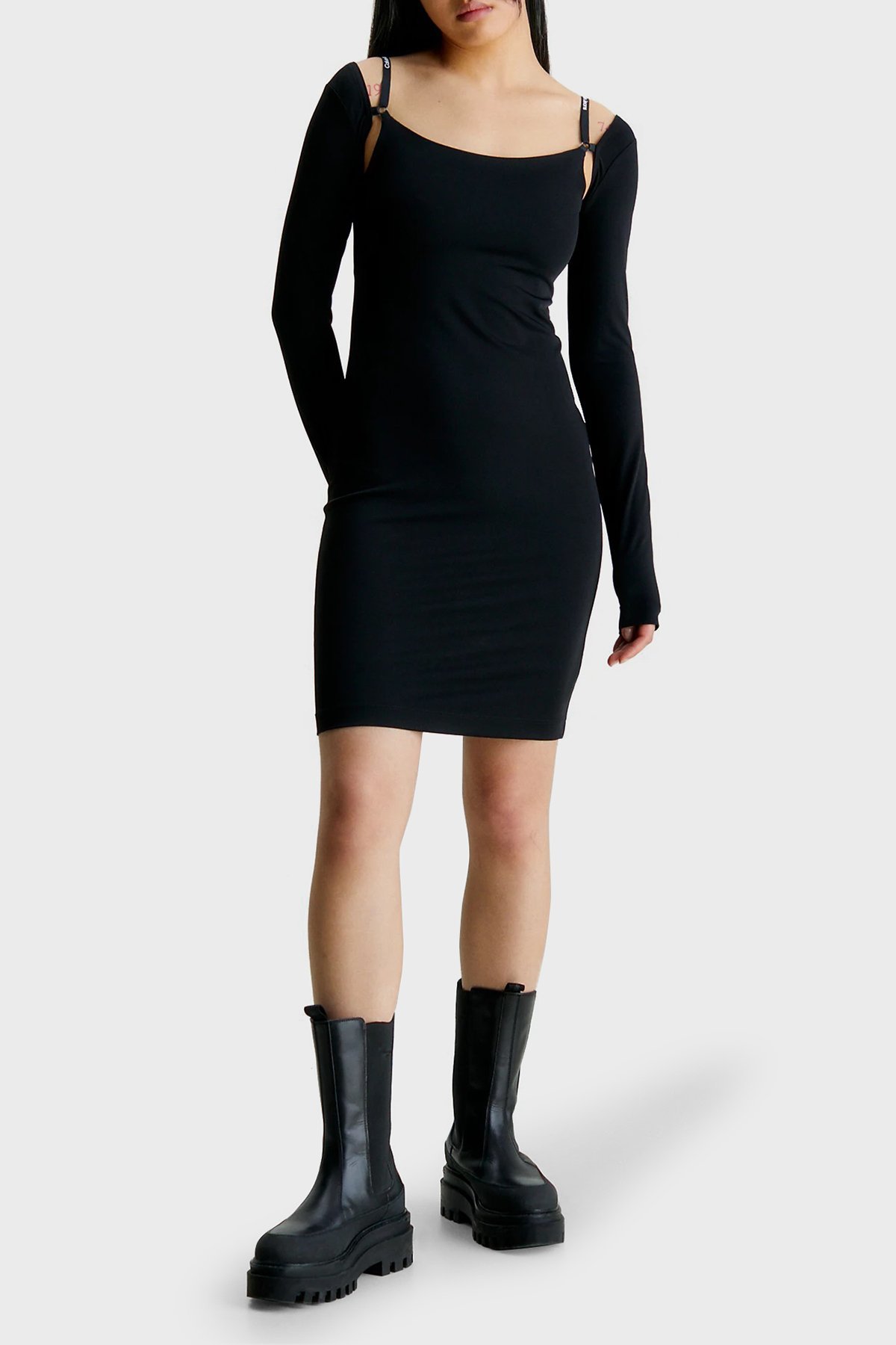 Calvin Klein Streç Logo Baskılı Slim Fit Mini Boy Yırtmaçlı J20J225290BEH Bayan Elbise J20J225290 BEH SİYAH - Calvin Klein Calvin Klein Streç Logo Baskılı Slim Fit Mini Boy Yırtmaçlı J20J225290BEH Bayan Elbise J20J225290 BEH SİYAH - Calvin Klein (1)