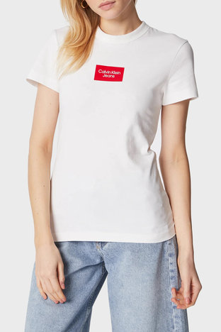 Organik Pamuklu Bisiklet Yaka Dar Kesim Bayan T Shirt J20J220274 YAF BEYAZ