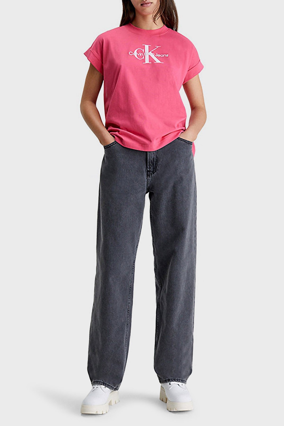 Organik Pamuklu Bisiklet Yaka Relaxed Fit J20J220717XI1 Bayan T Shirt J20J220717 XI1 PEMBE