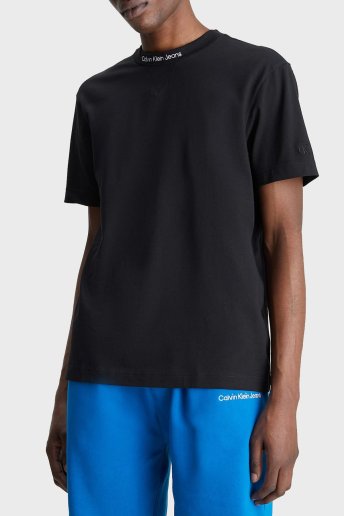 Organik Pamuklu Logolu Bisiklet Yaka Relaxed Fit J30J322845BEH Erkek T Shirt J30J322845 BEH SİYAH