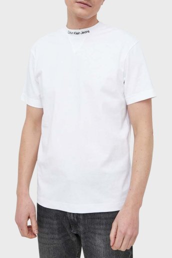 Organik Pamuklu Logolu Bisiklet Yaka Relaxed Fit J30J322845YAF Erkek T Shirt J30J322845 YAF BEYAZ