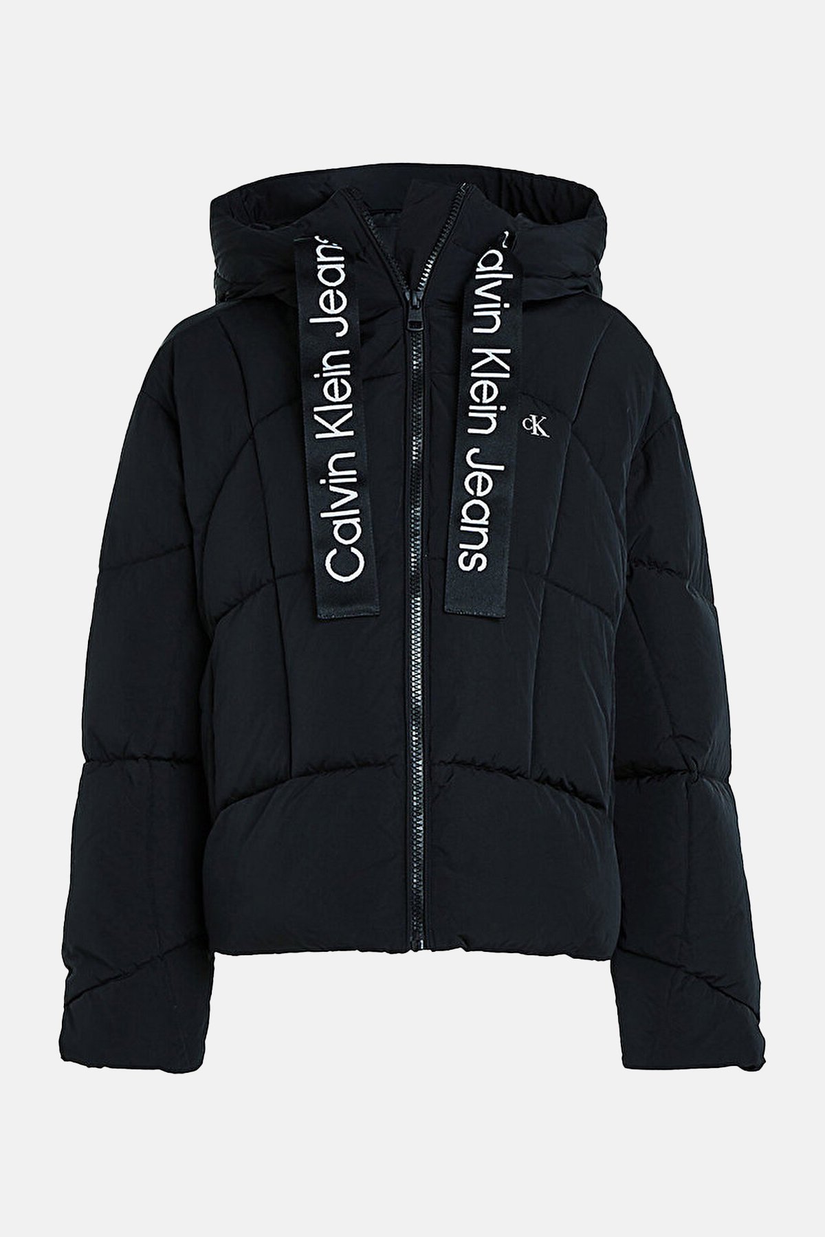 Oversize Fit Kapüşonlu Kısa Şişme J20J221901BEH Bayan Mont J20J221901 BEH SİYAH
