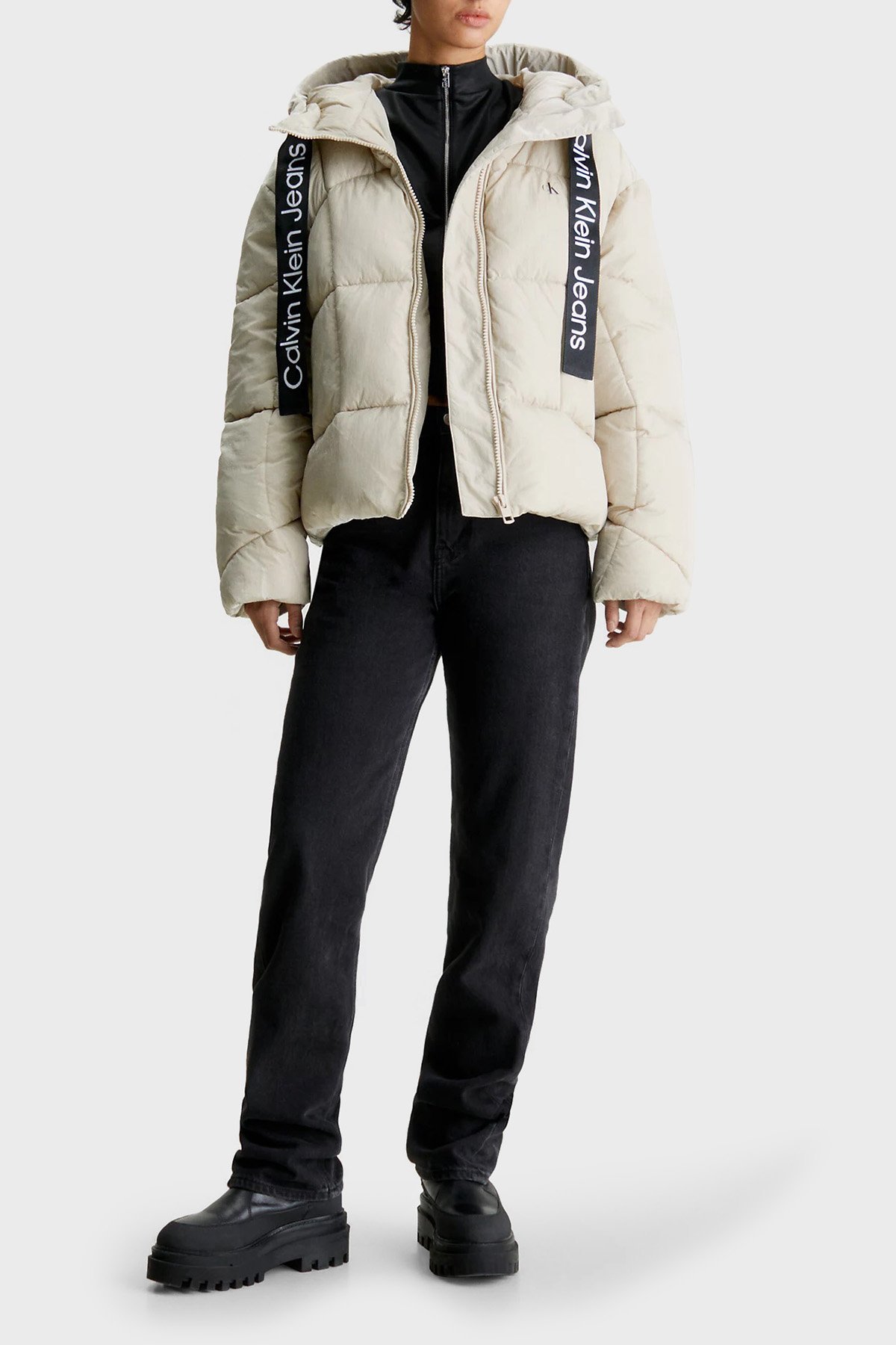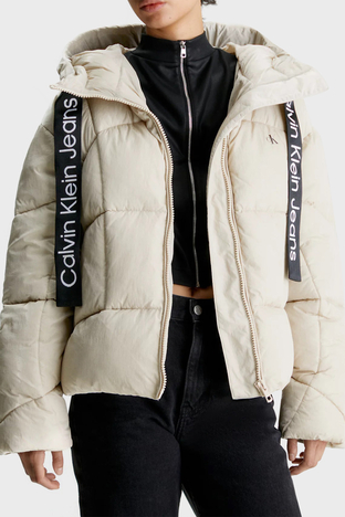Oversize Fit Kapüşonlu Kısa Şişme J20J221901PED Bayan Mont J20J221901 PED BEJ