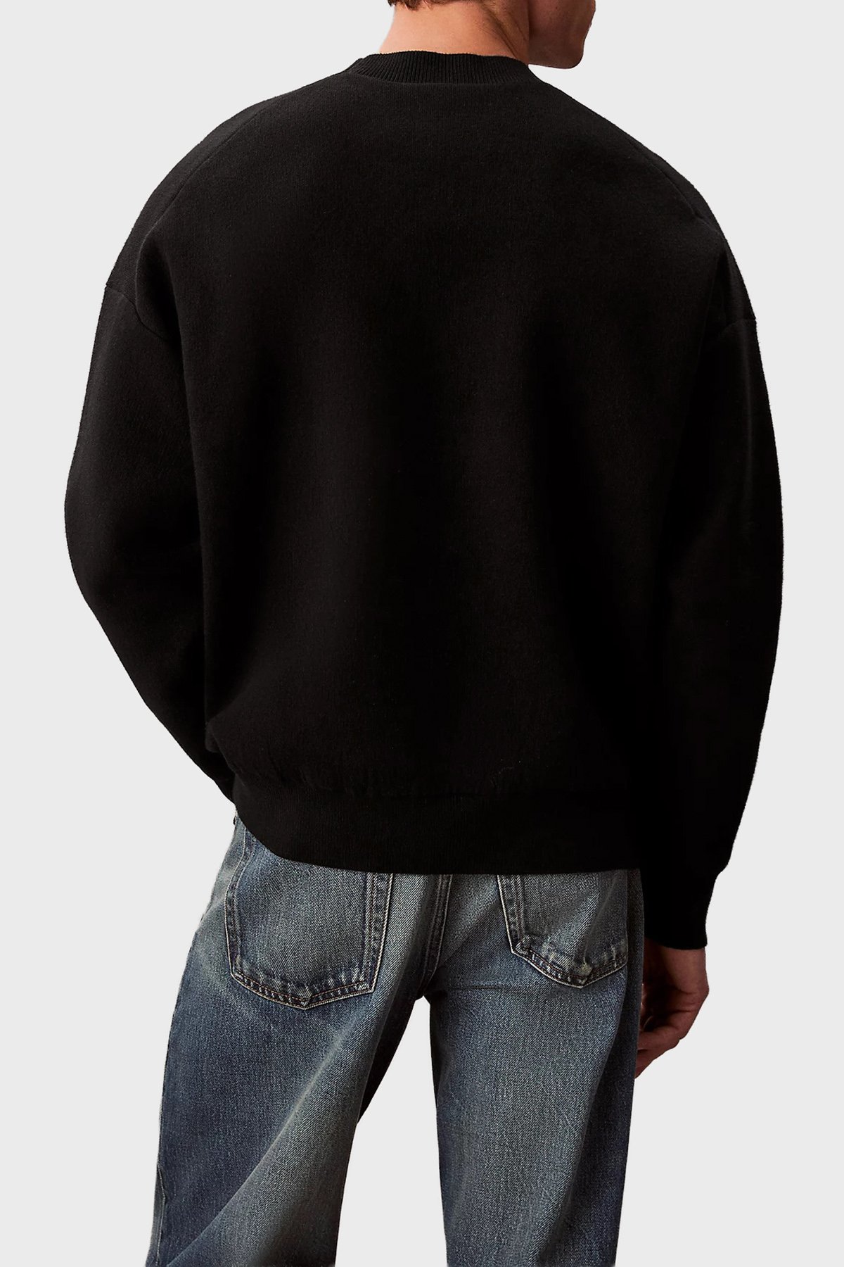 Pamuk ve Kaşmir Karışımlı Relaxed Fit Logolu LV04RD305GUB1 Erkek Kazak LV04RD305G UB1 SİYAH
