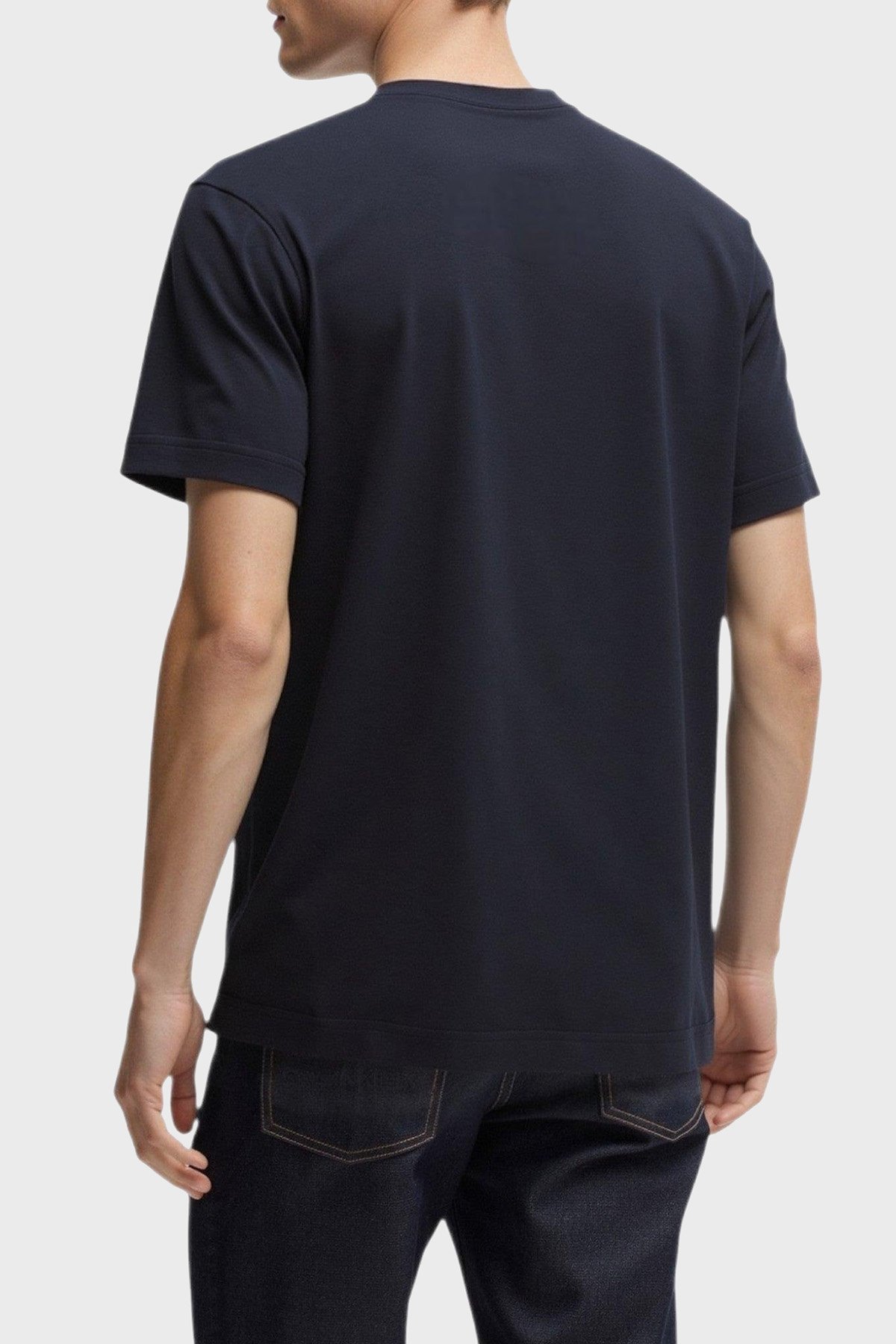 Pamuk ve Keten Karışımlı Regular Fit Bisiklet Yaka KM0KM01138CEF Erkek T Shirt KM0KM01138 CEF LACİVERT